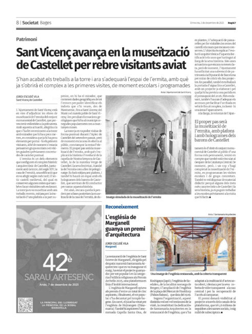 Regió7 publica un article sobre els premis d’arquitectura Archello 2025, on la rehabilitació de l’església de Sant Esteve de Marganell ha estat l’obra guanyadora per vot popular, en la categoria “edifici religiós de l’any”.