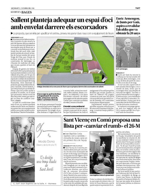 The newspaper Regió7 publishes an article about the proposal of a new tent for concerts and outdoor leisure area in the slaughterhouse area of Sallent.