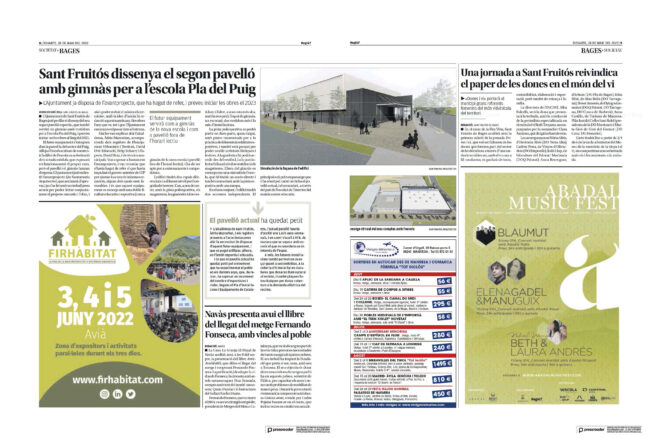 The newspaper publishes an article on the presentation of the preliminary design of the new pavilion, written by Santamaria Arquitectes.