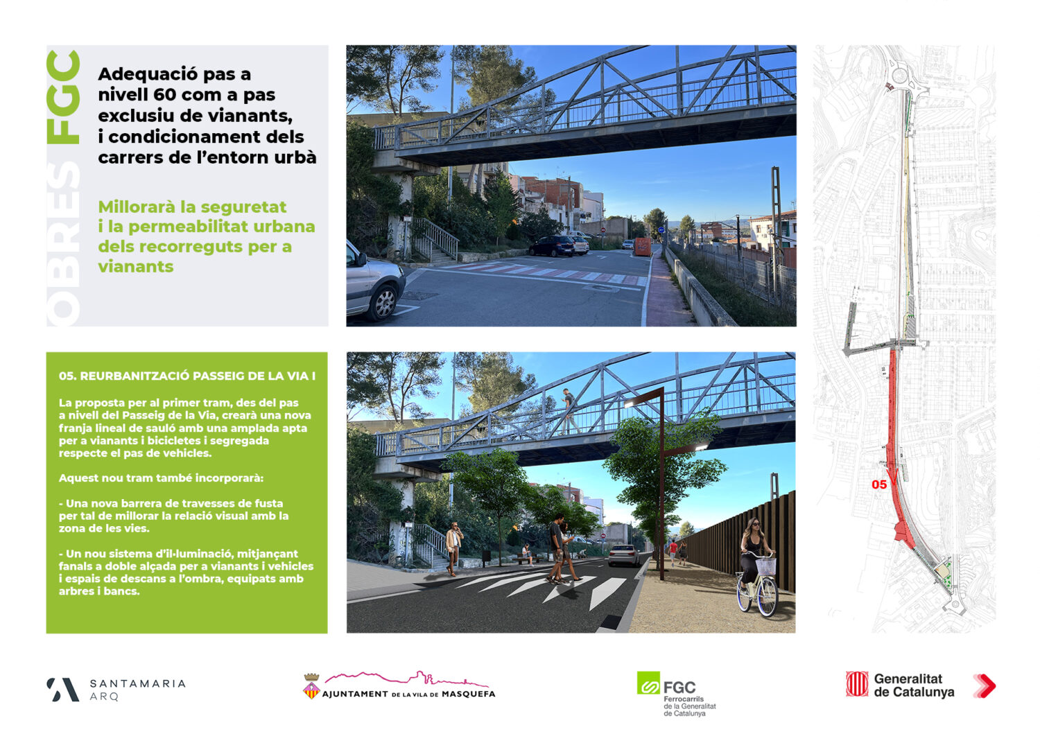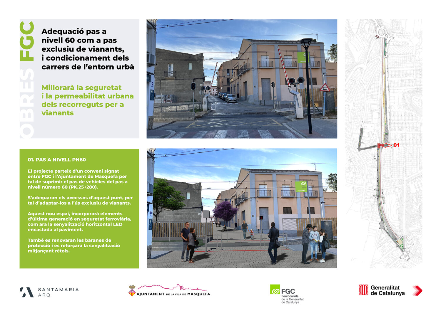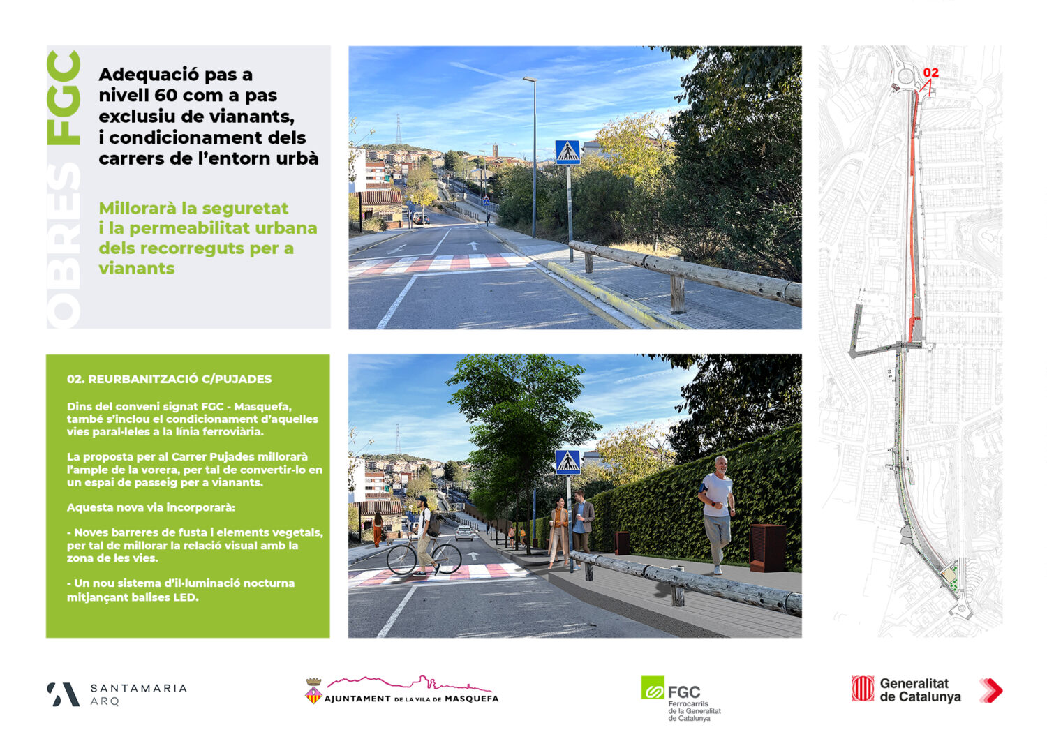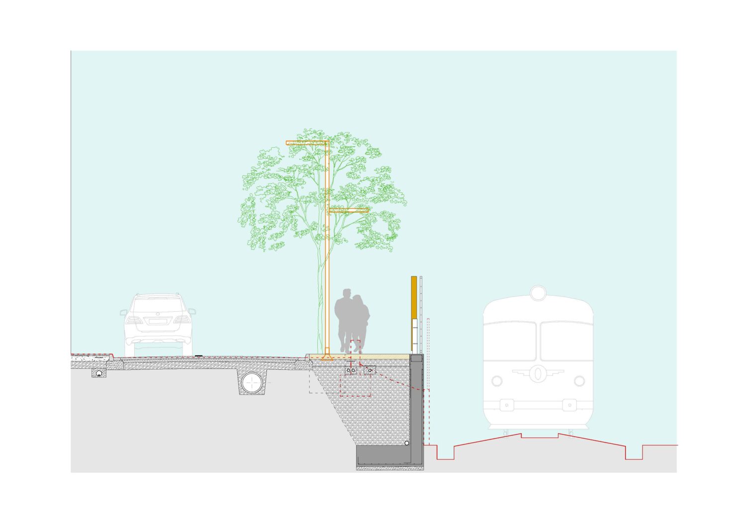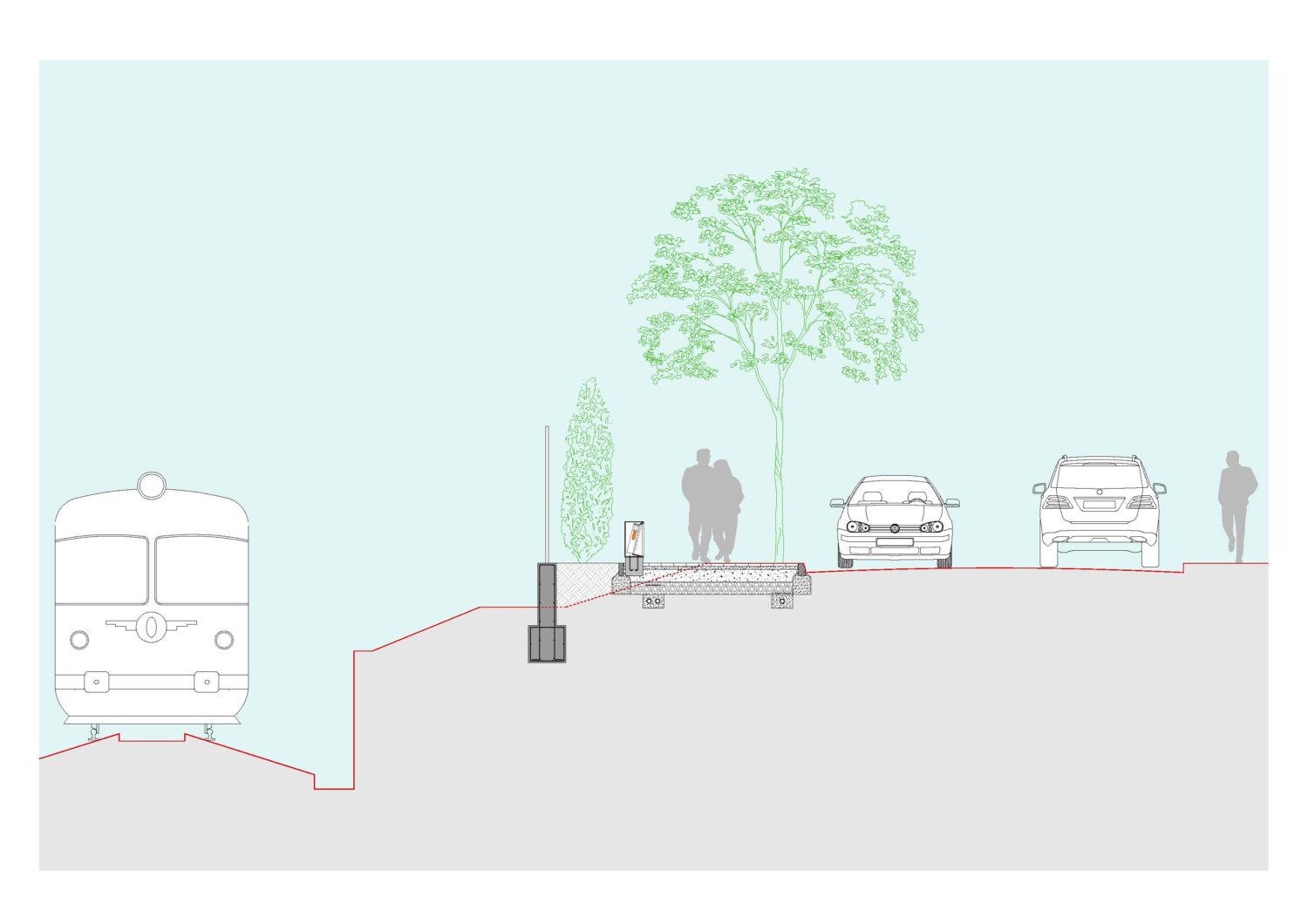 • Renovation of the level crossing to be pedestrian-only, with new protection railings and light signaling on the pavement.