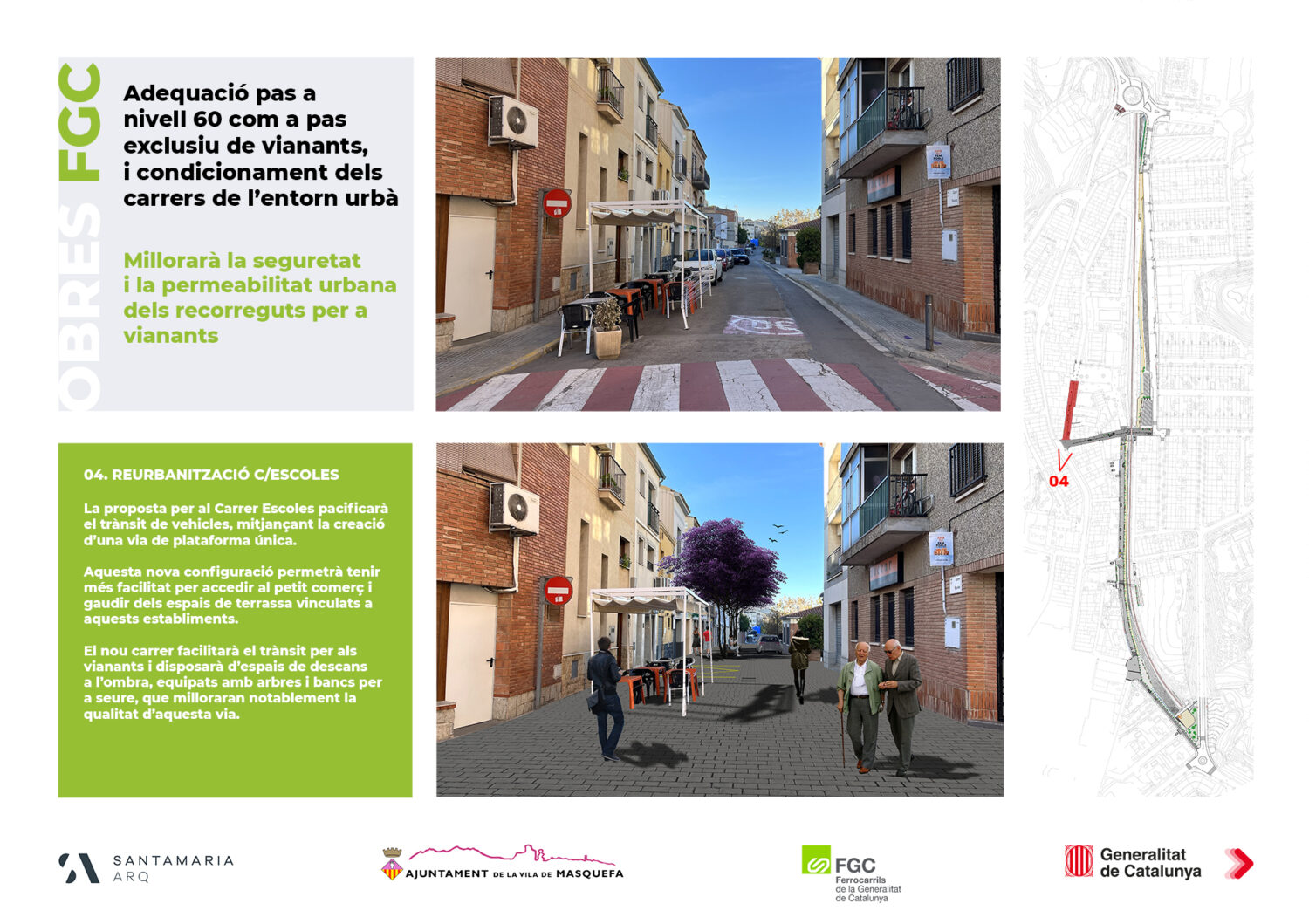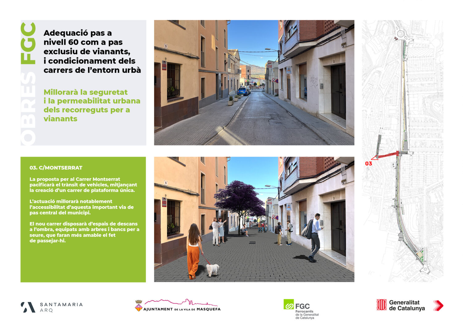 • Redevelopment of Carrer Montserrat and Carrer Escoles to turn them into single platform streets, following the criteria already established in the Carrer Major project.