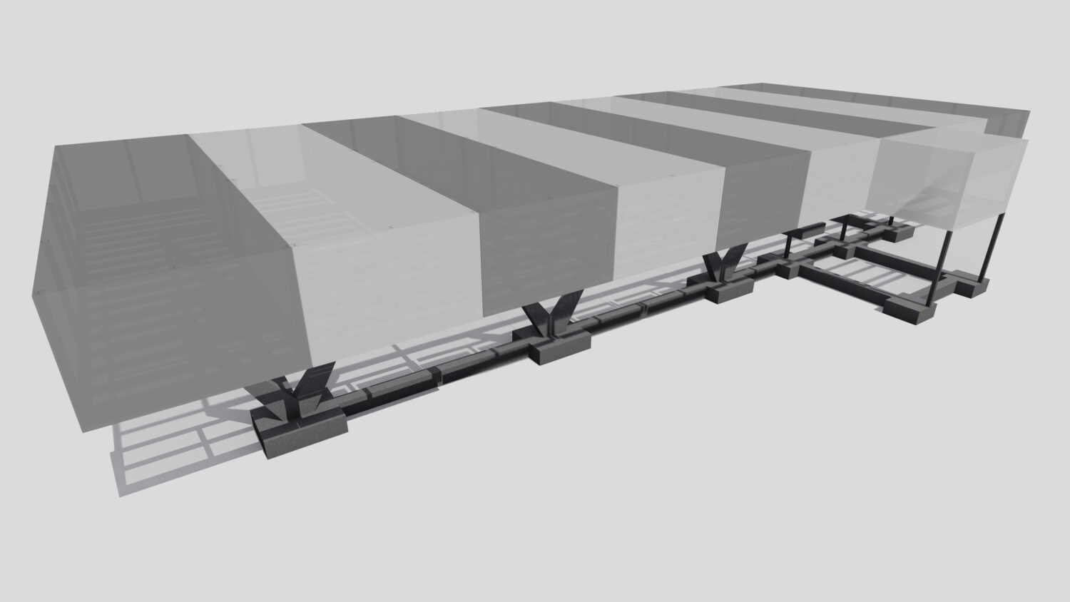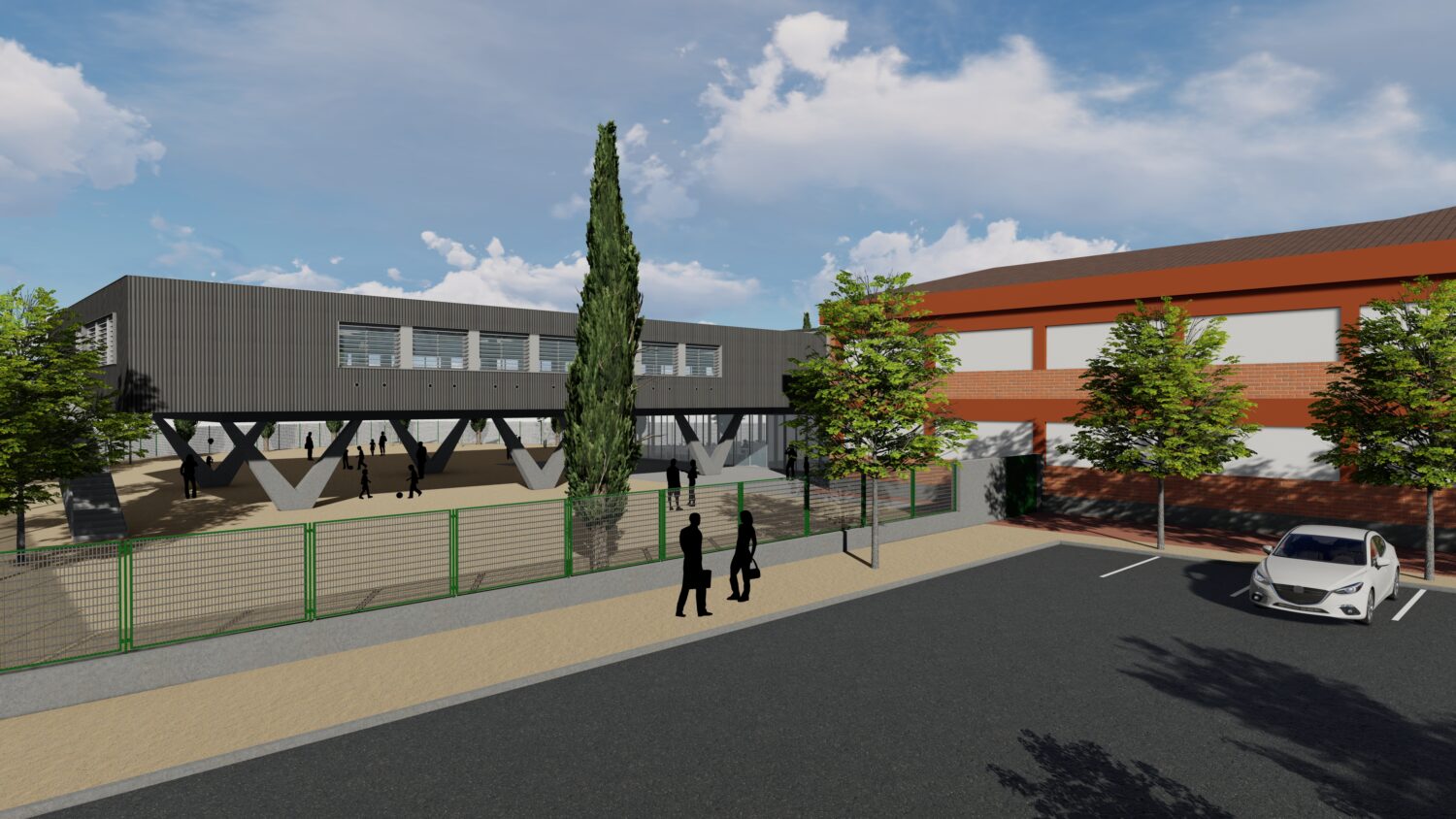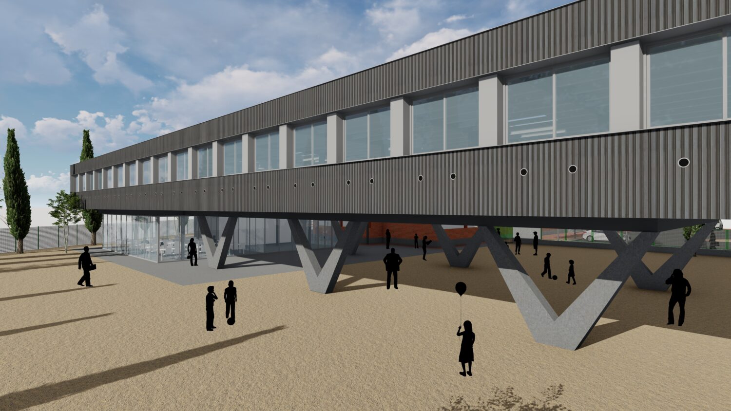 The envelope of the new building will be continuous, of corrugated metal sheet, in order to give a unitary image of the volume.