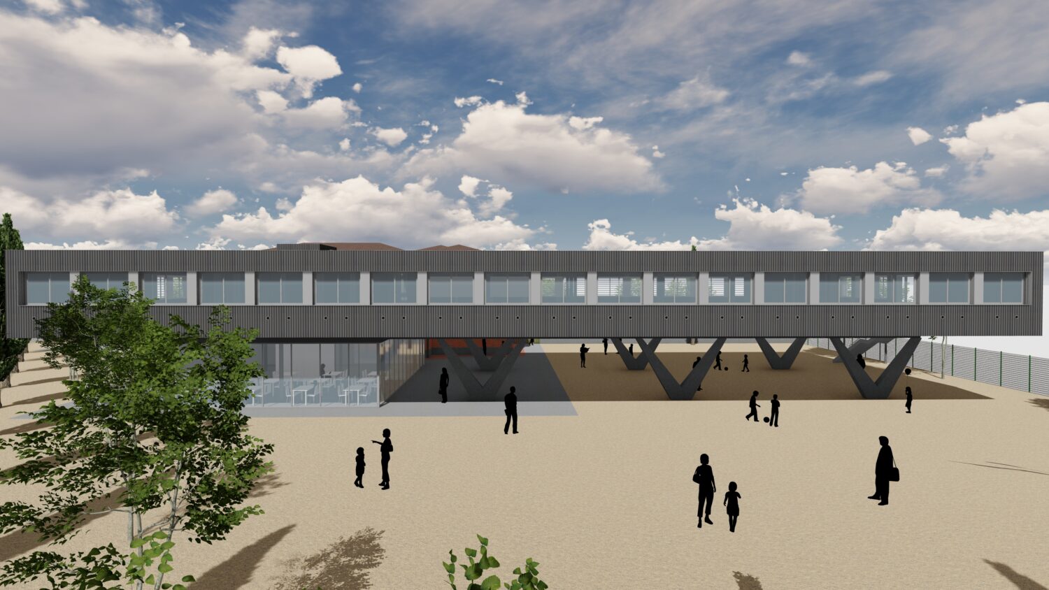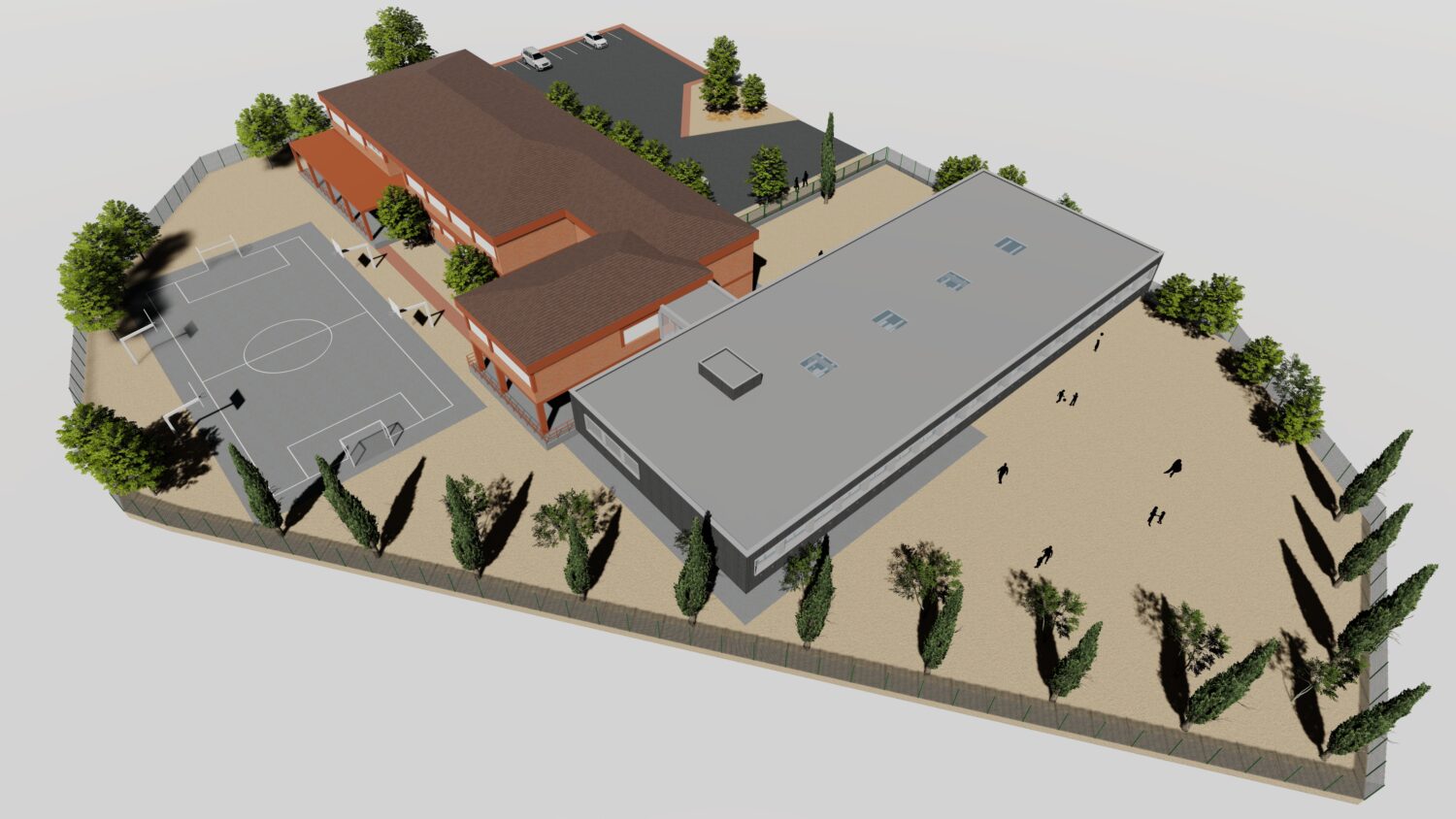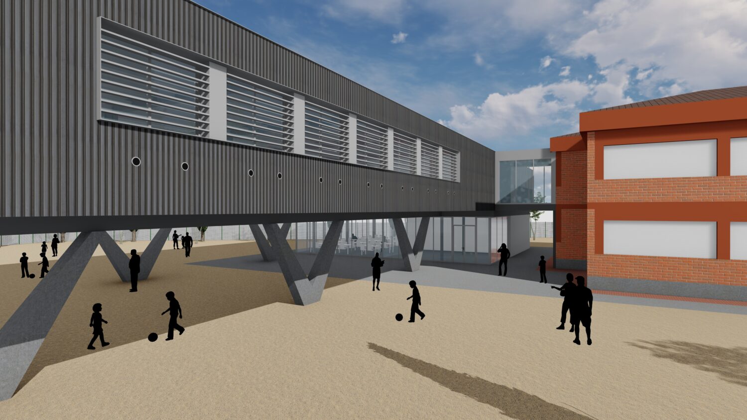 The level of the ground floor is located at the level of the courtyards, so that the porch that is generated becomes another courtyard for the high school. In this porch, the pillars are unified as tripods in order to reduce their number and leave a more open space.