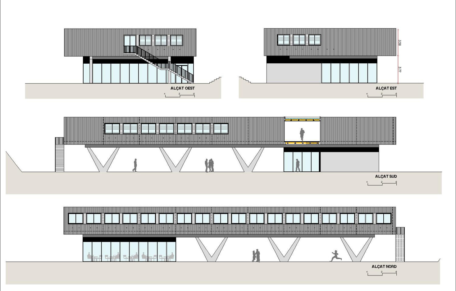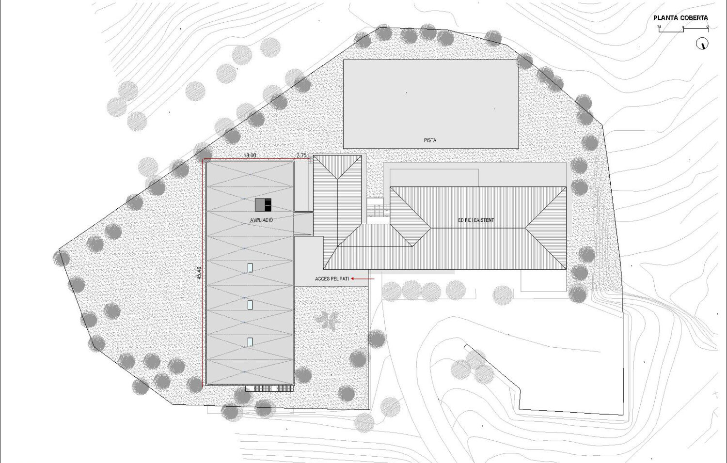 The new building is formed by a prism with a rectangular floor plan formed by an addition of pre-industrialized modules that rests on the structure of the ground floor made in situ. These are 9 self-supporting modules measuring 5×18 m and 3’60 m high, made in a workshop, which include floor slabs, roof, enclosures and carpentry.