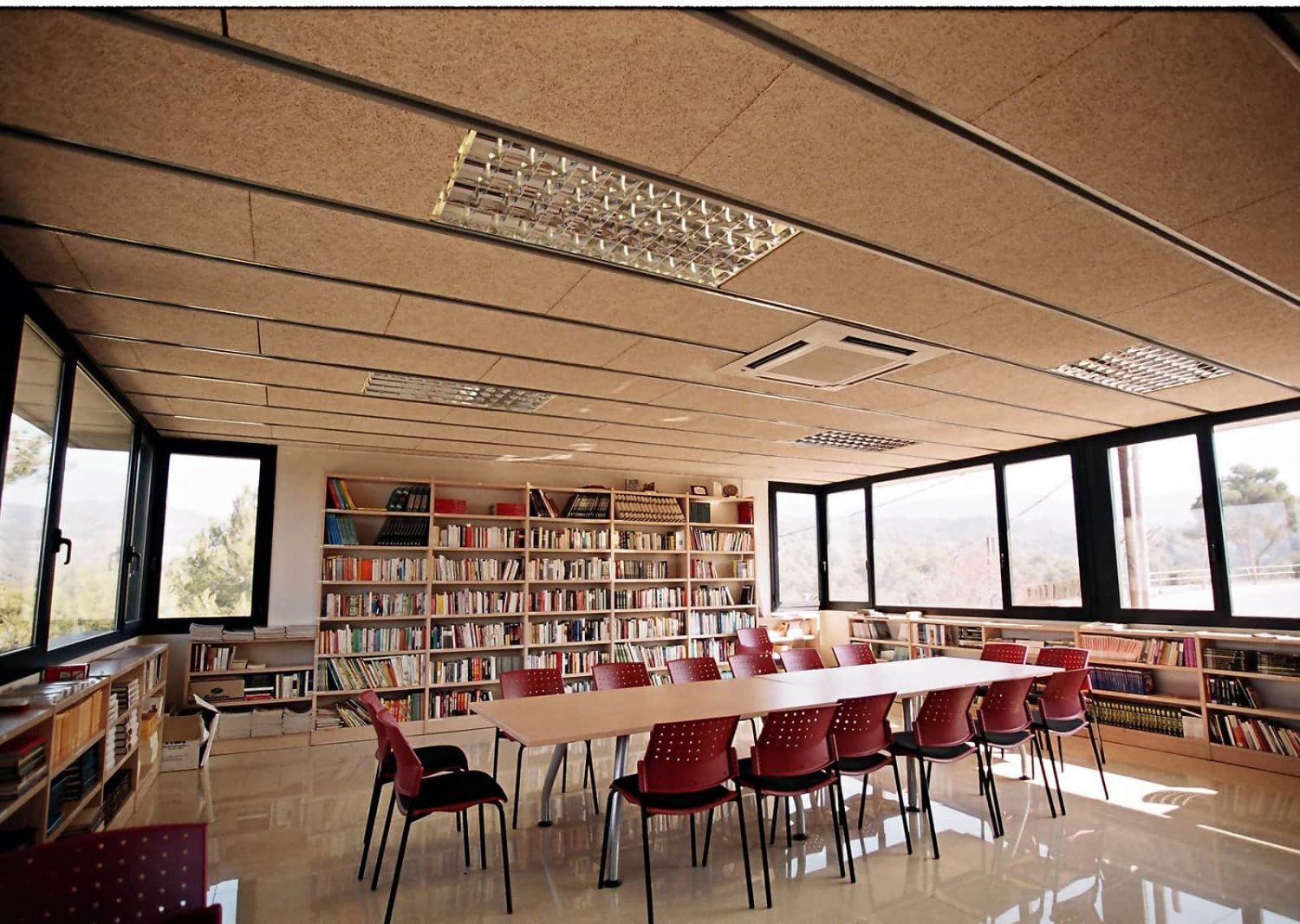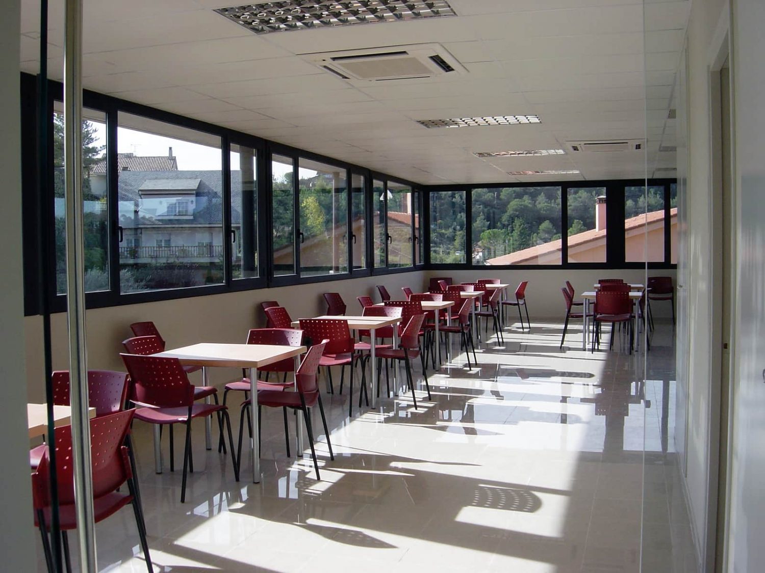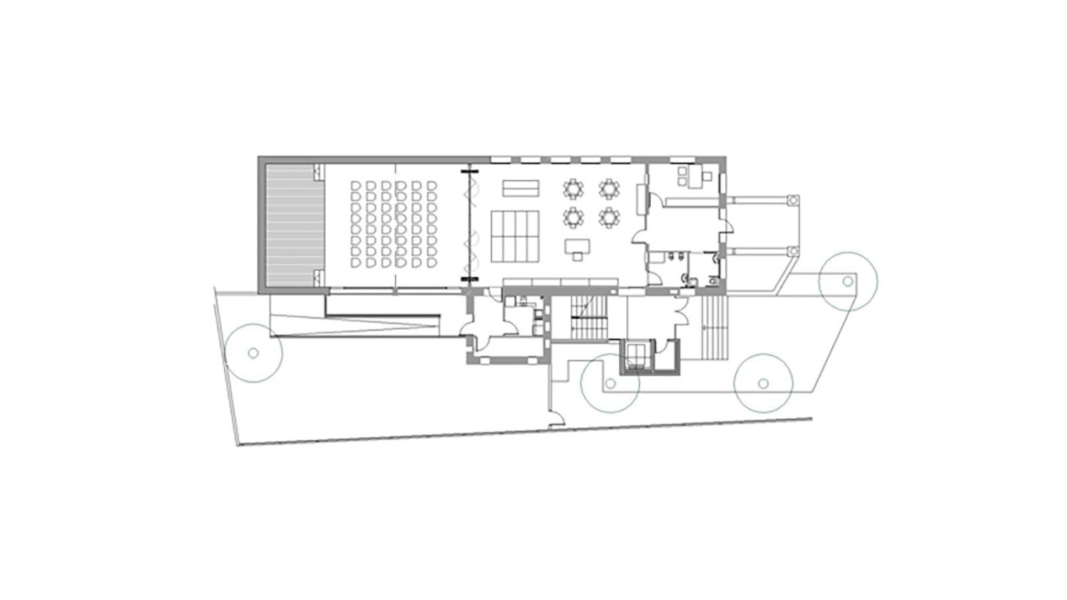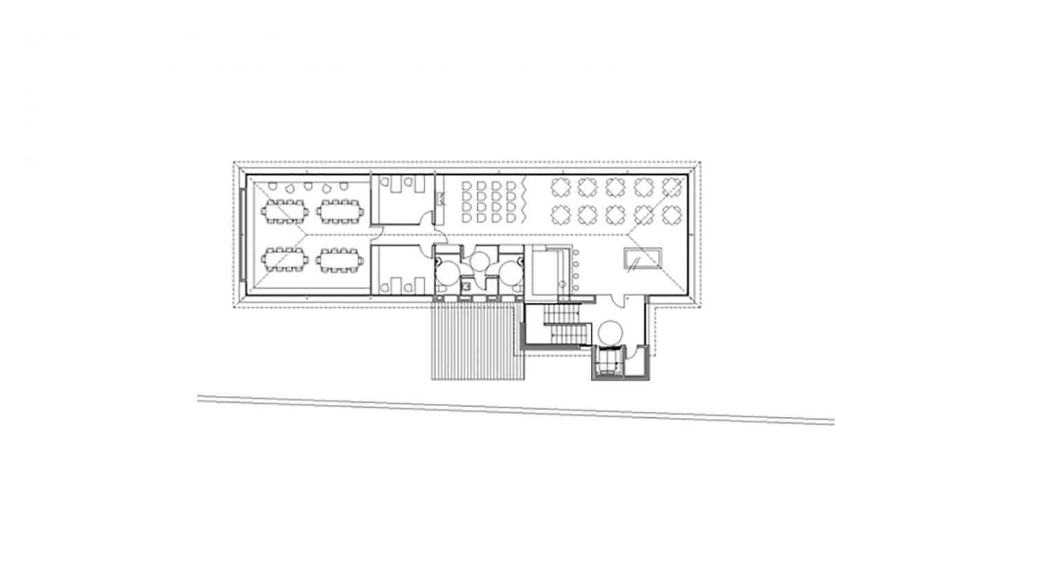 In an existing 2-storey building, the project proposal is the extension of the multipurpose room, keeping the same width of the current room and incorporating a visual and physical relationship with the exterior through windows that open to a landscaped space. The interior-exterior relationship is materialized with stands that look to the green space.