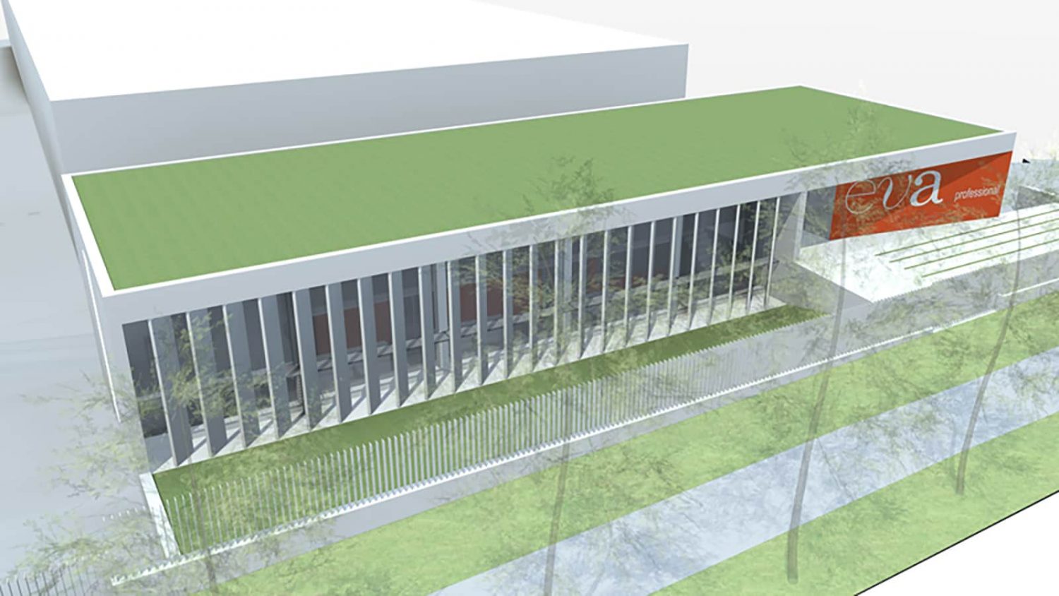 A new office building is built adjacent to the existing factory.