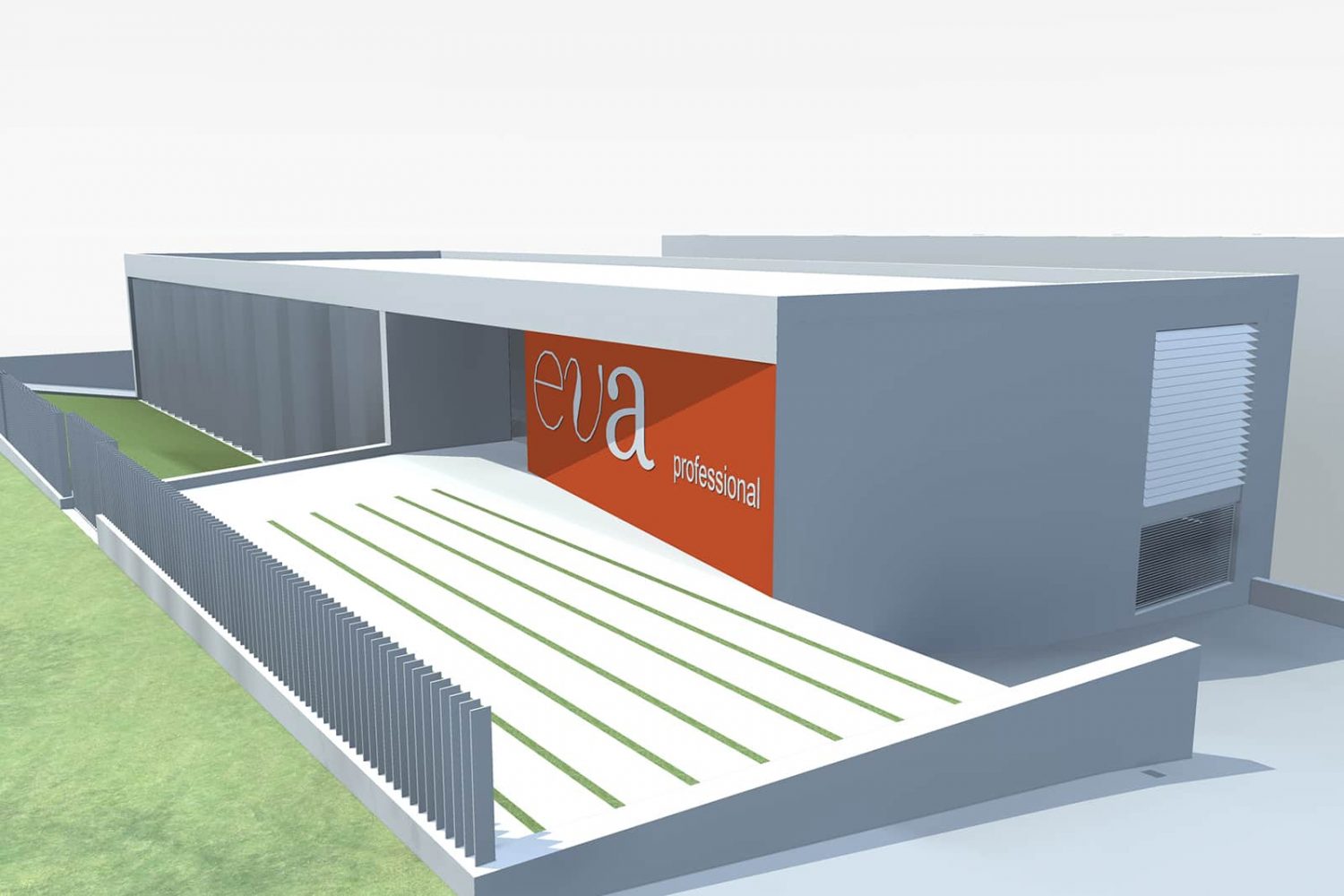 It is a volume with elongated plant, with a ground floor on the level of the street and a lower level next to the factory.