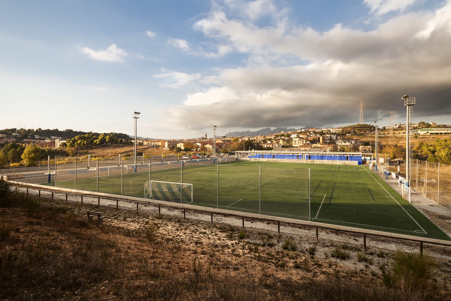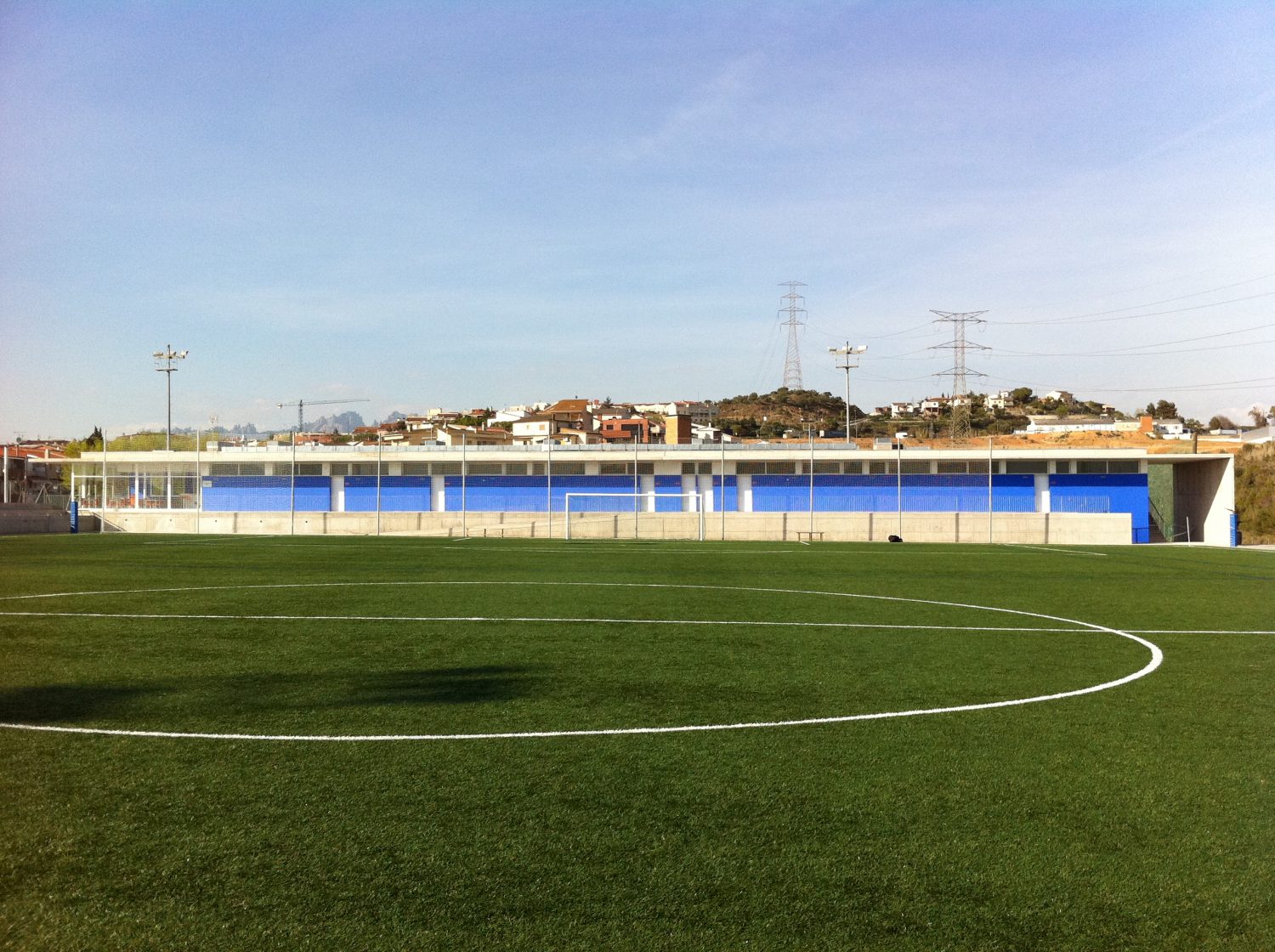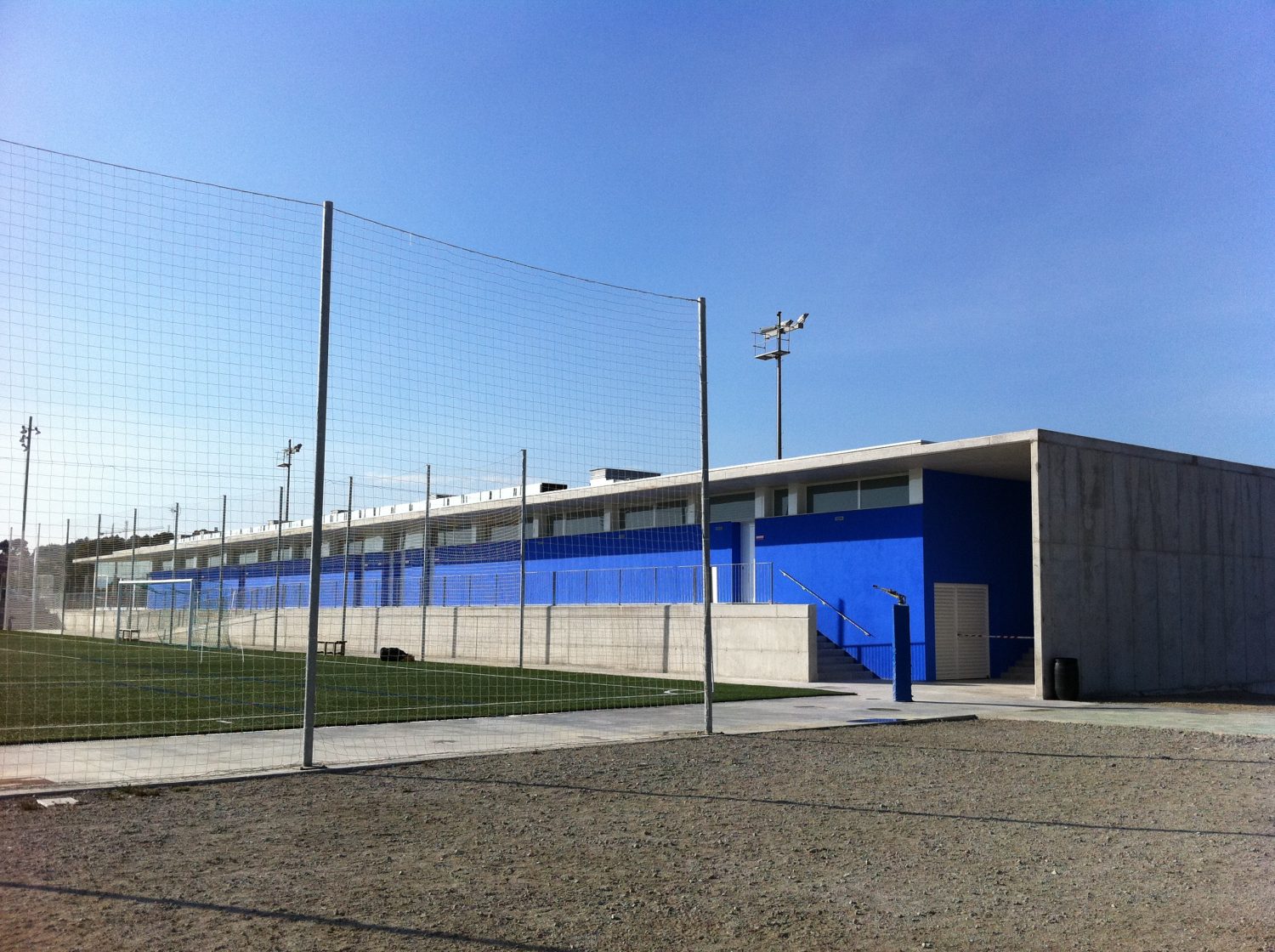 The project contemplates the construction of a new artificial grass football field and a rectangular locker rooms building that will serve the existing soil field and the new lawn field.