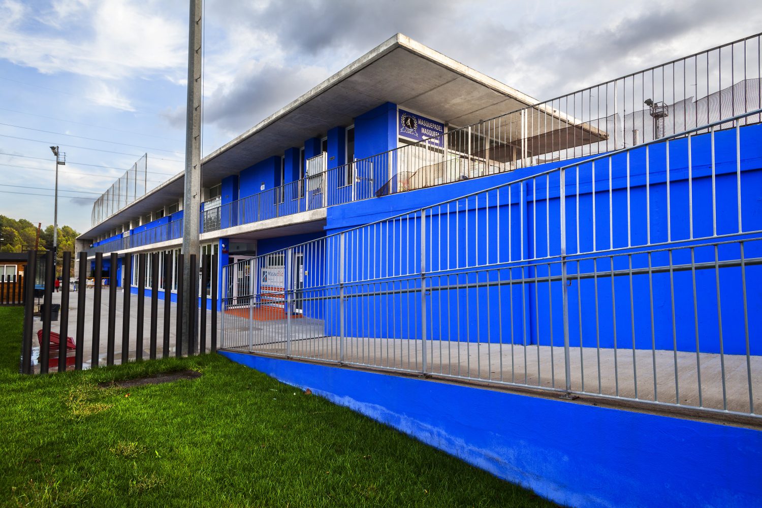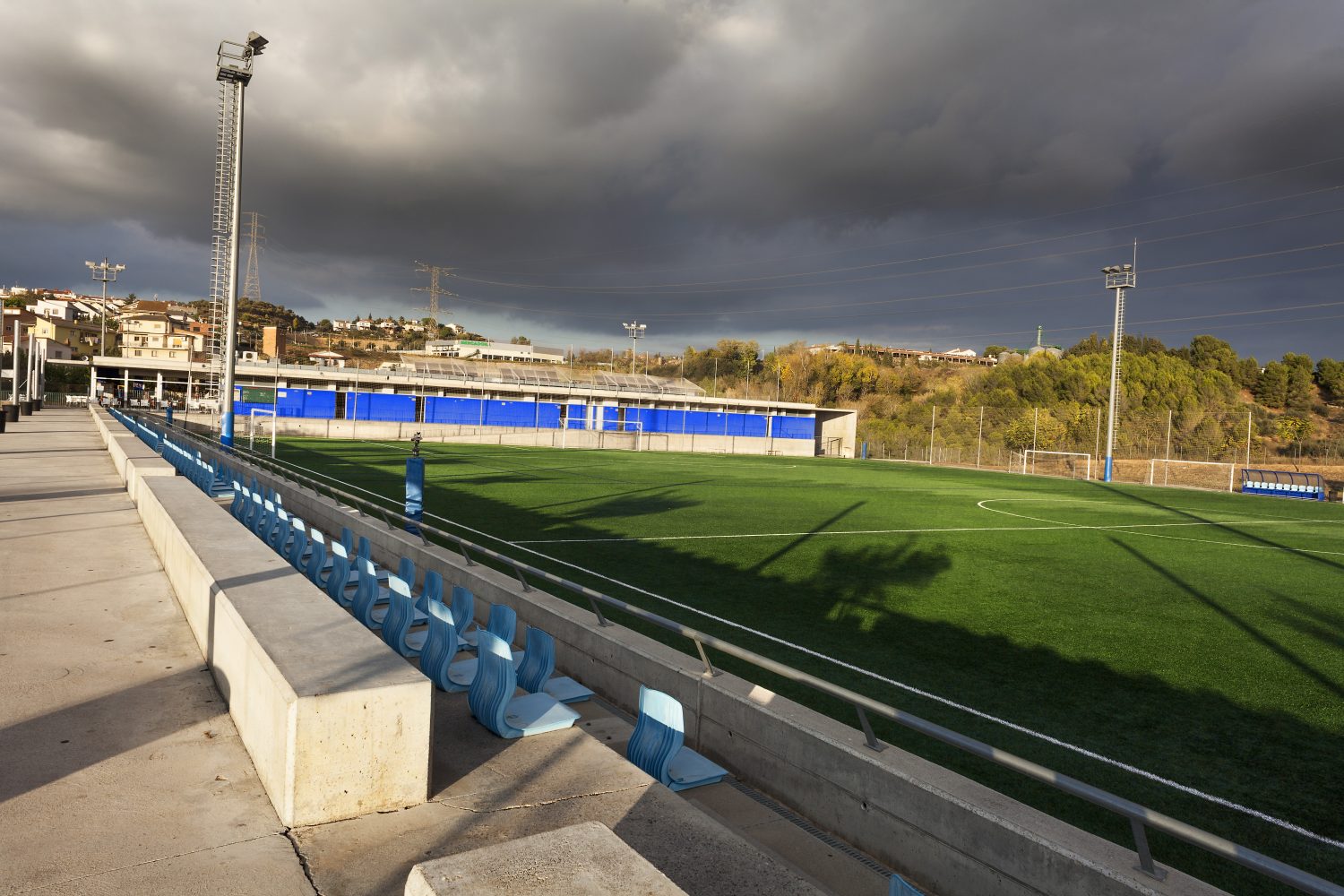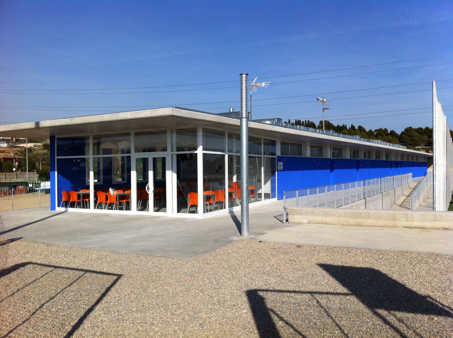 The project contemplates the construction of a new artificial grass football field and a rectangular locker rooms building that will serve the existing soil field and the new lawn field.