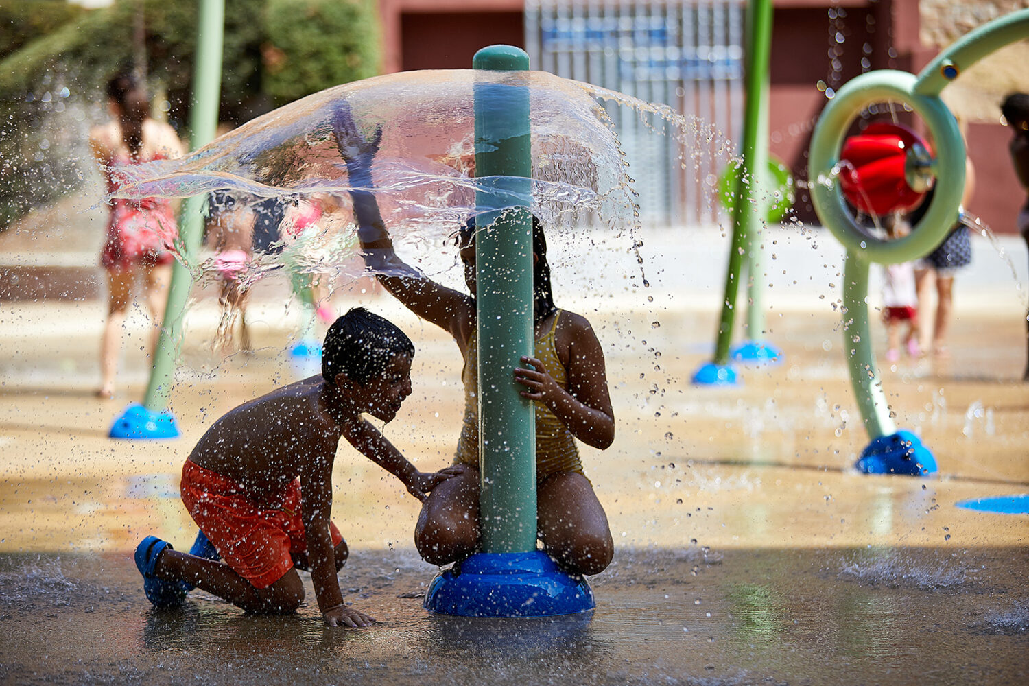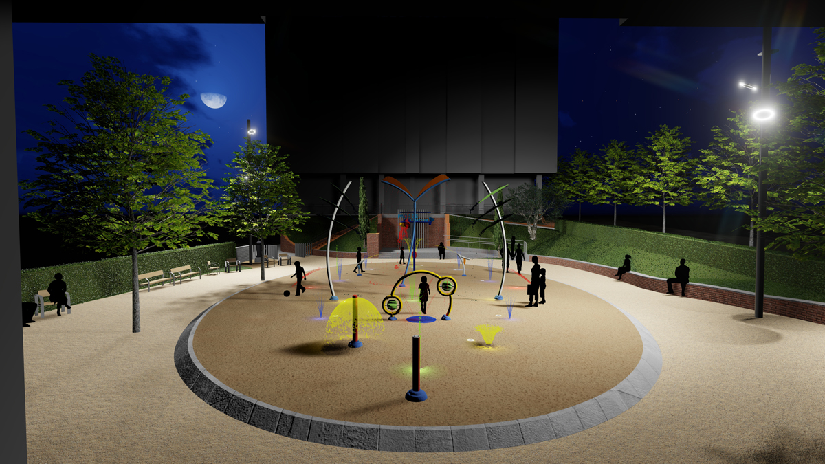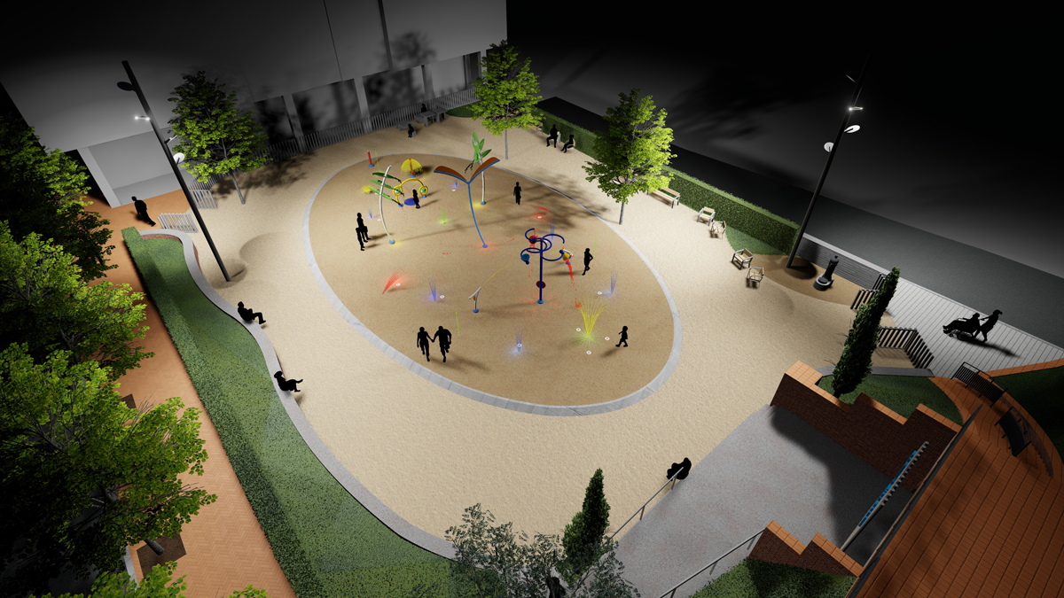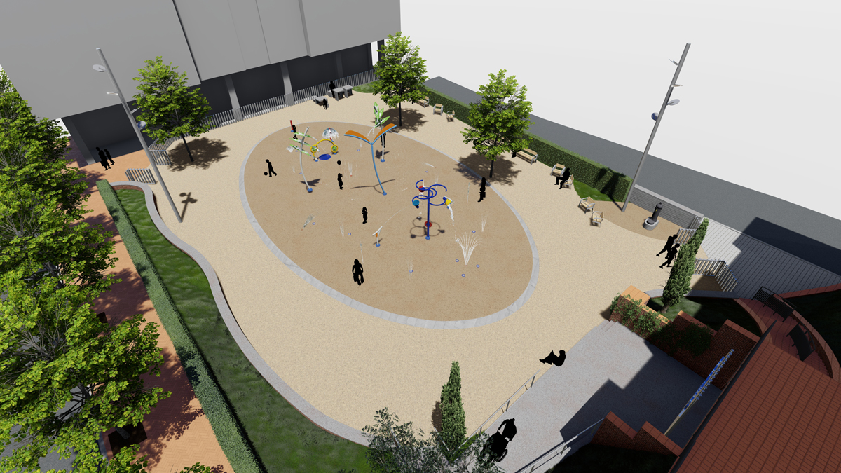 In the central part of the square there is an elliptical playground area with water games specific for each age range: children’s area, family area and youth area.