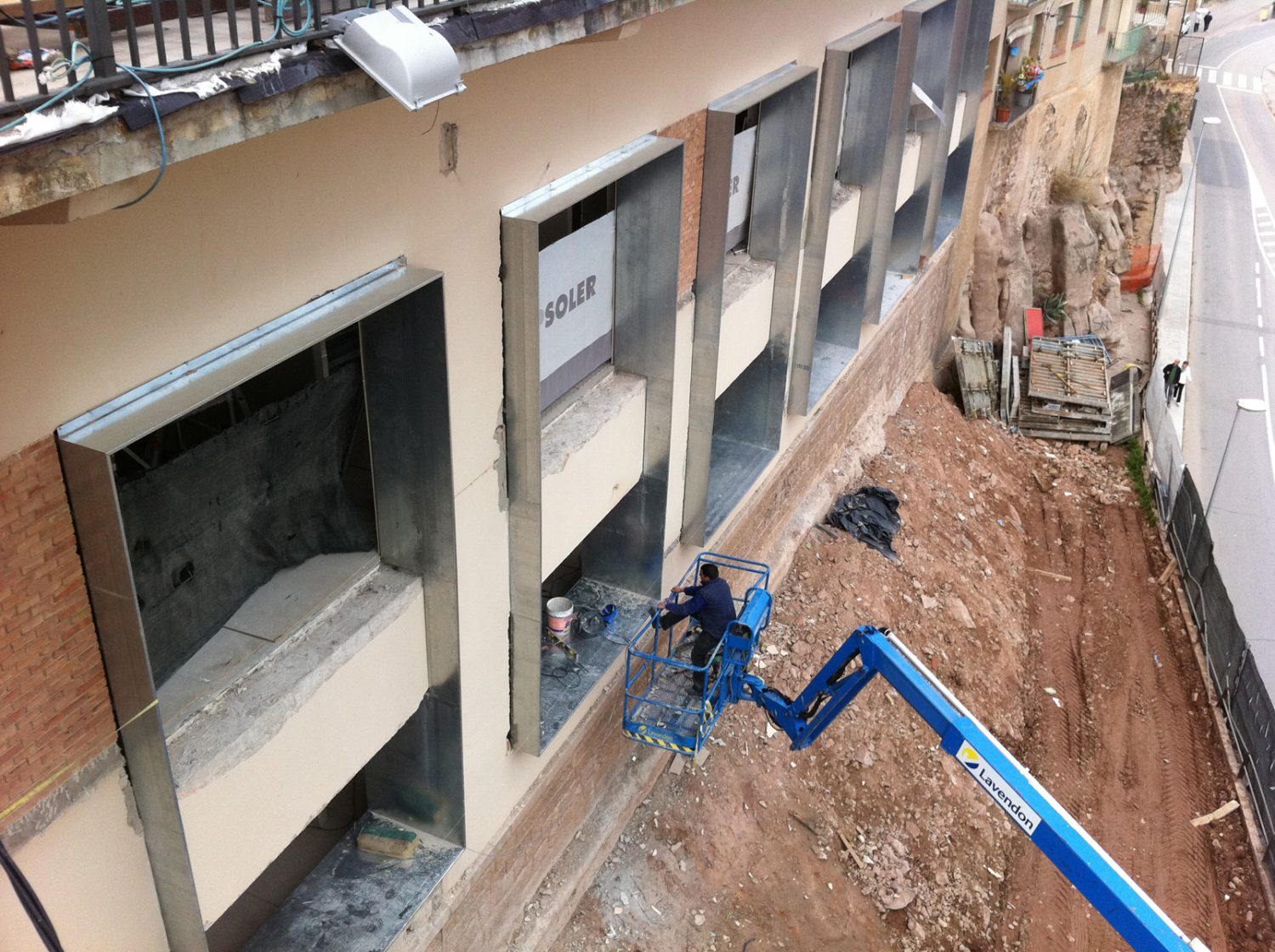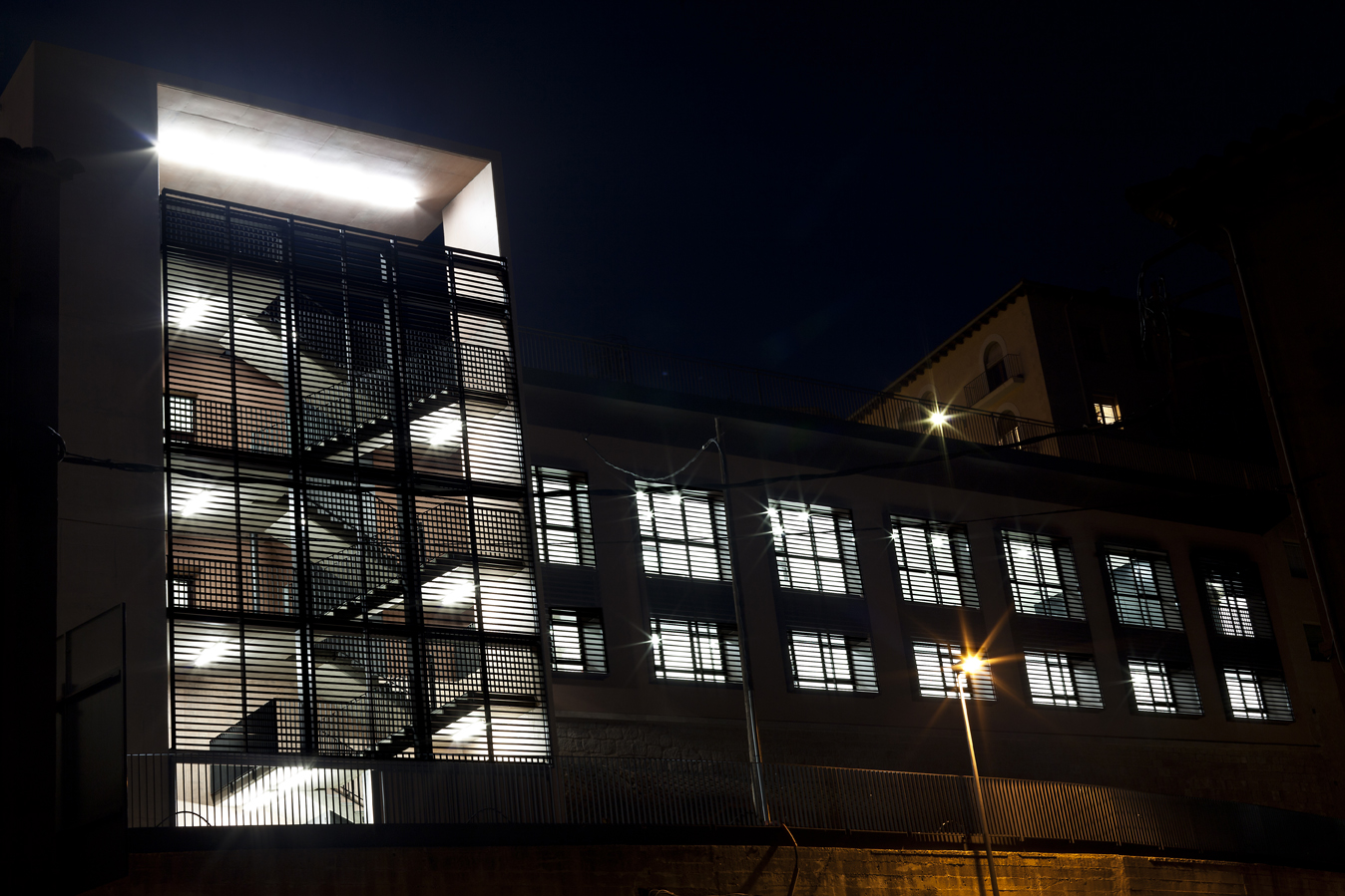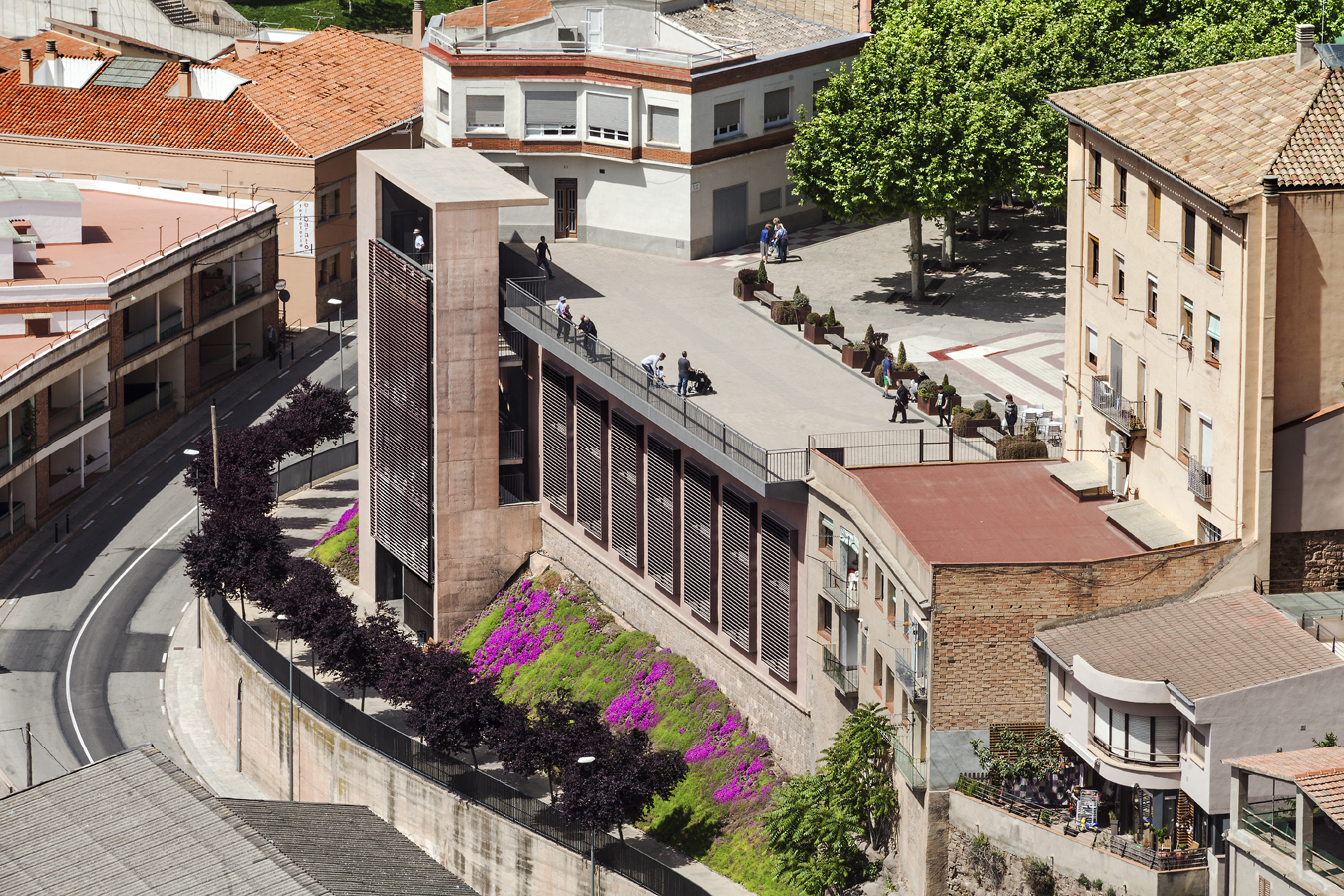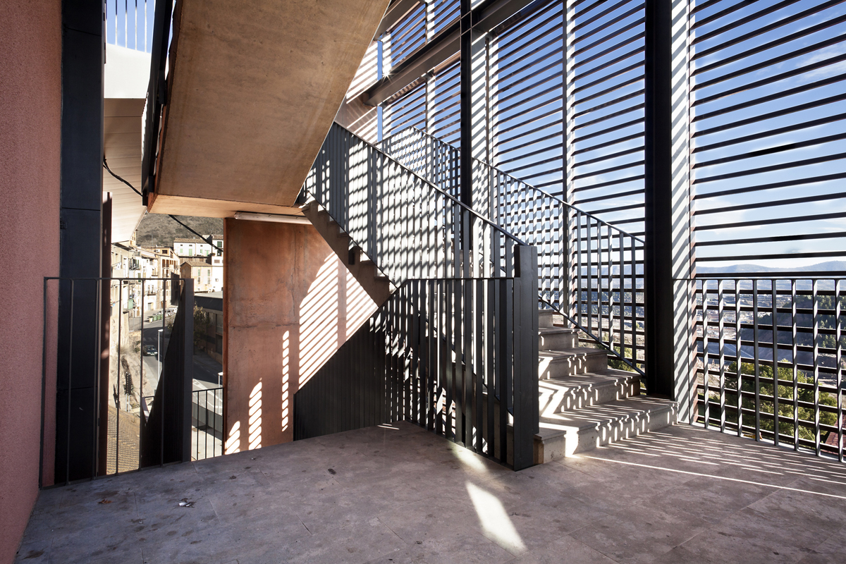 Previously, the building was occupied by the Senior Center, for the elderly in the area, with access on the ground floor and no elevator. A circular volume, located at the back of the building, incorporated a spiral staircase that connected the square de la Fira with the access level of the building.