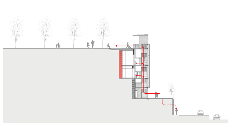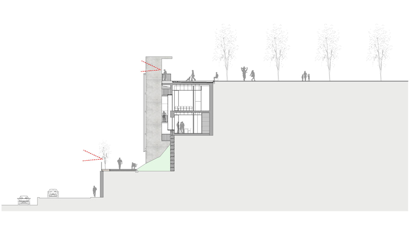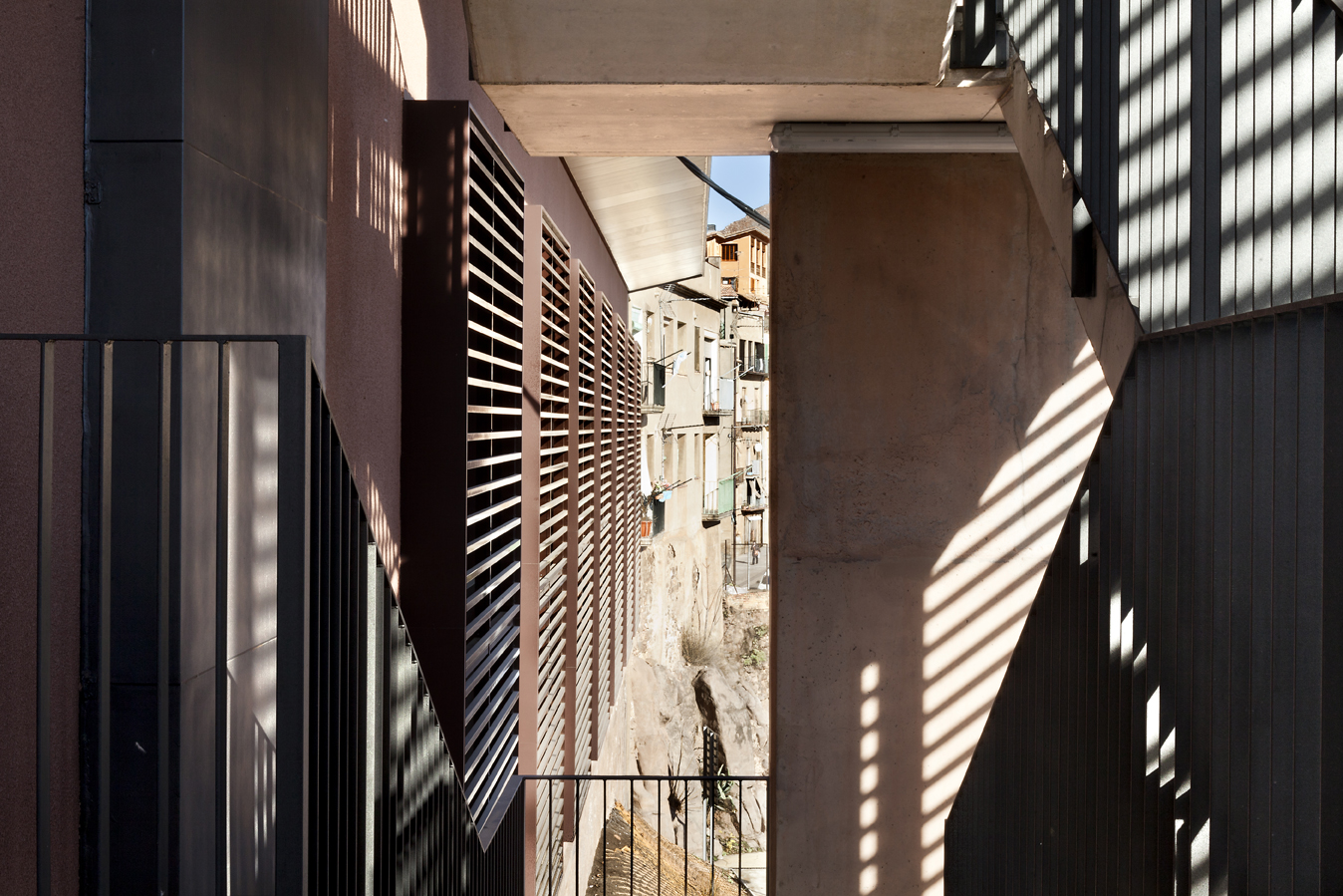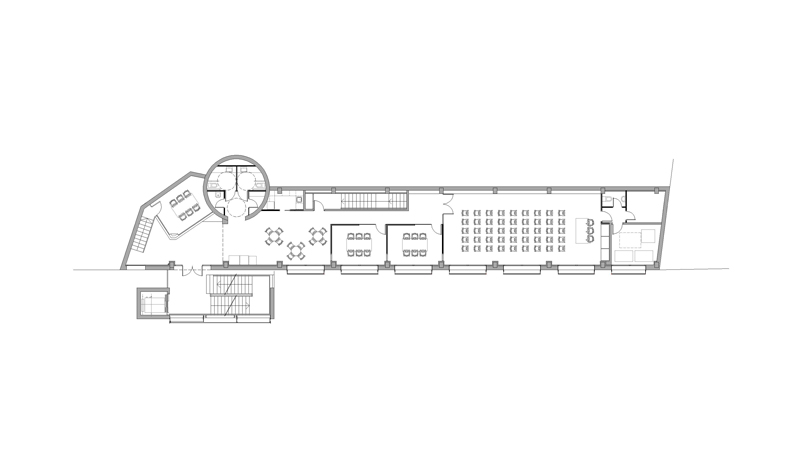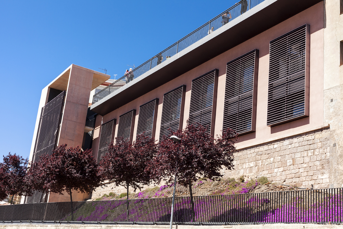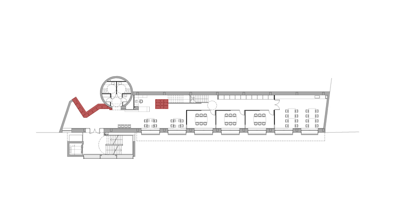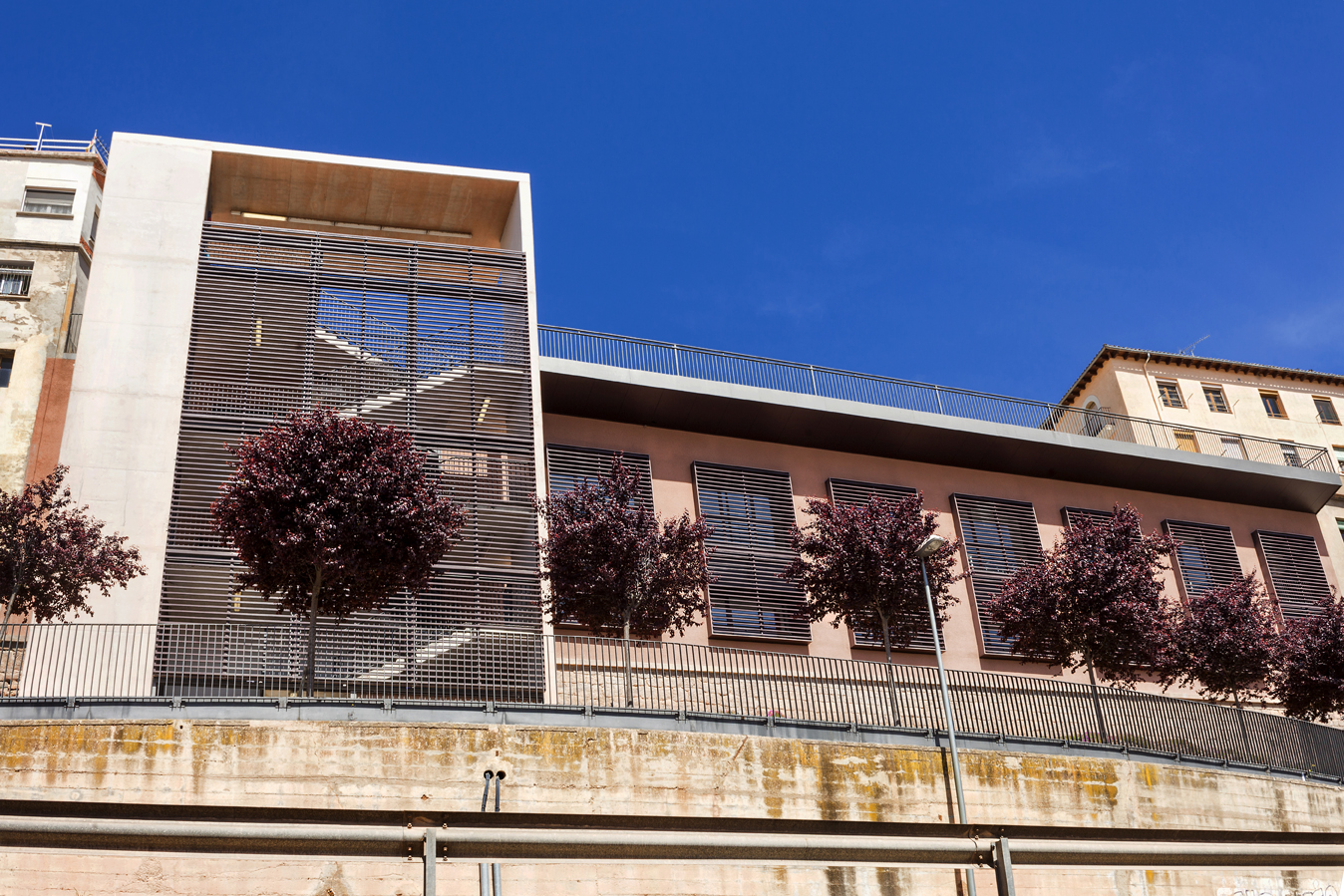 Previously, the building was occupied by the Senior Center, for the elderly in the area, with access on the ground floor and no elevator. A circular volume, located at the back of the building, incorporated a spiral staircase that connected the square de la Fira with the access level of the building.