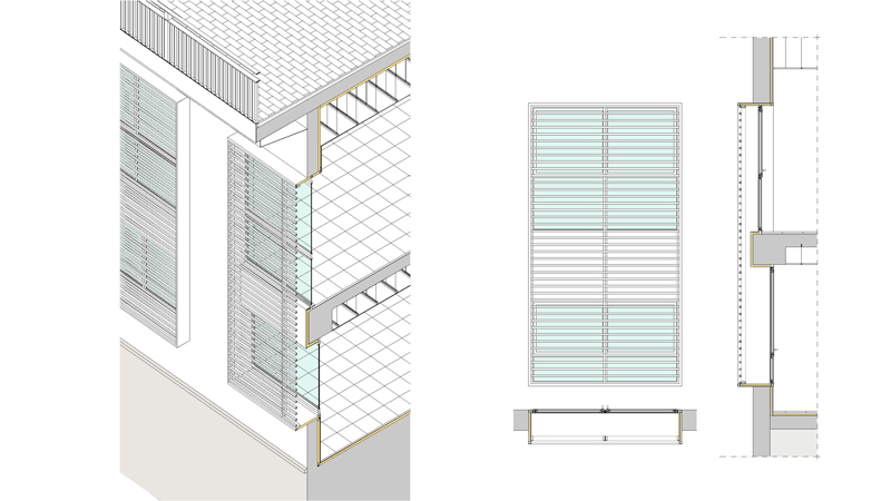 The action respects the original volume of the building and adapts the interior and the façade. The circular staircase is removed and a new rectangular volume was attached to the facade of the building incorporating the new created staircase, in addition to the accessible elevator that resolves the problem of the adapted access for disabled people to each floor.