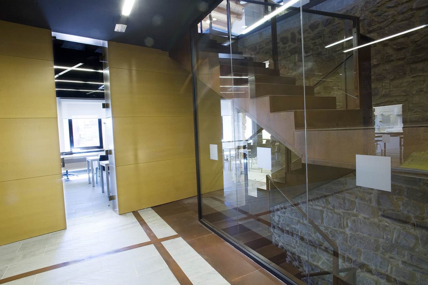 The structure of the building is made up of masonry walls, formalizing a central ring where the staircases are located.