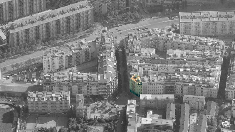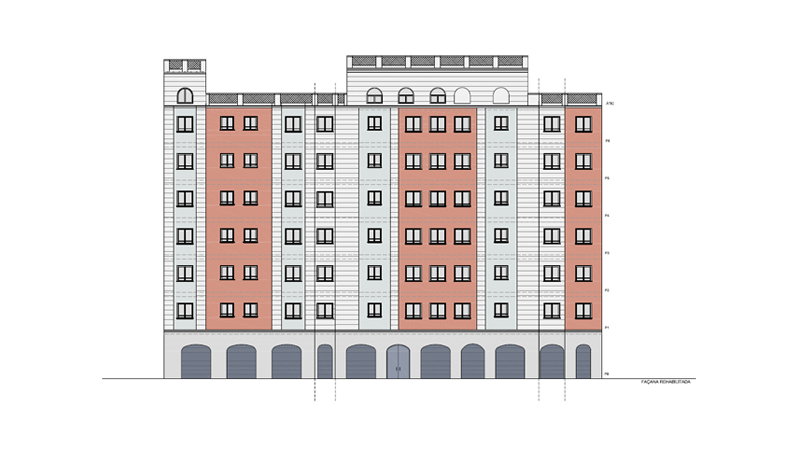 Comprehensive rehabilitation of a multi-family building between party walls formed by ground floor and 6 upper floors.