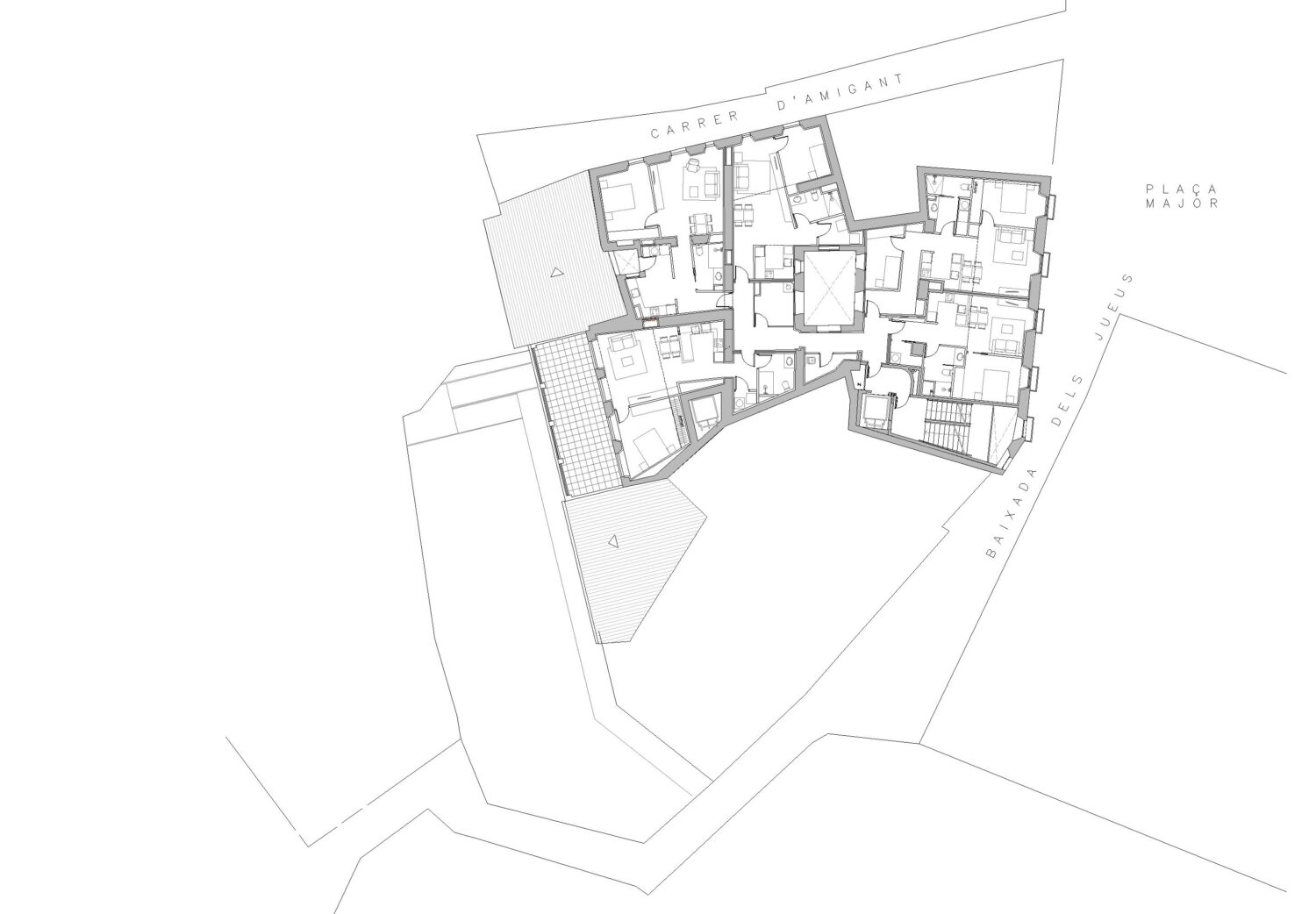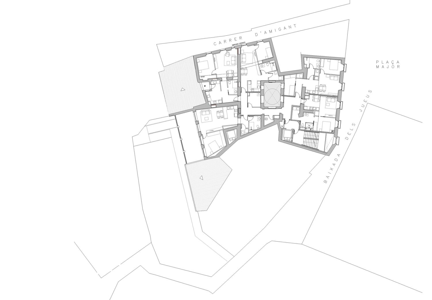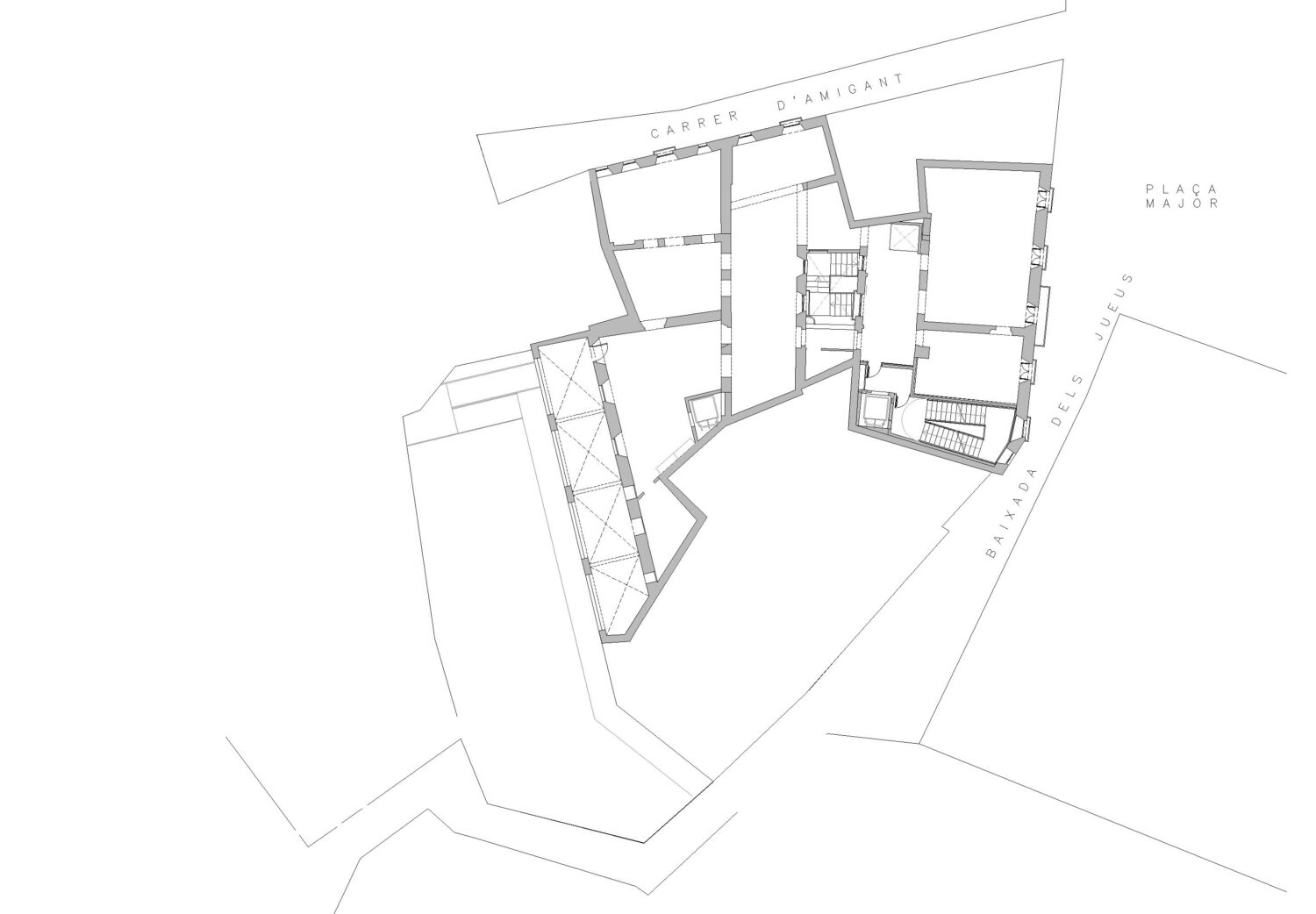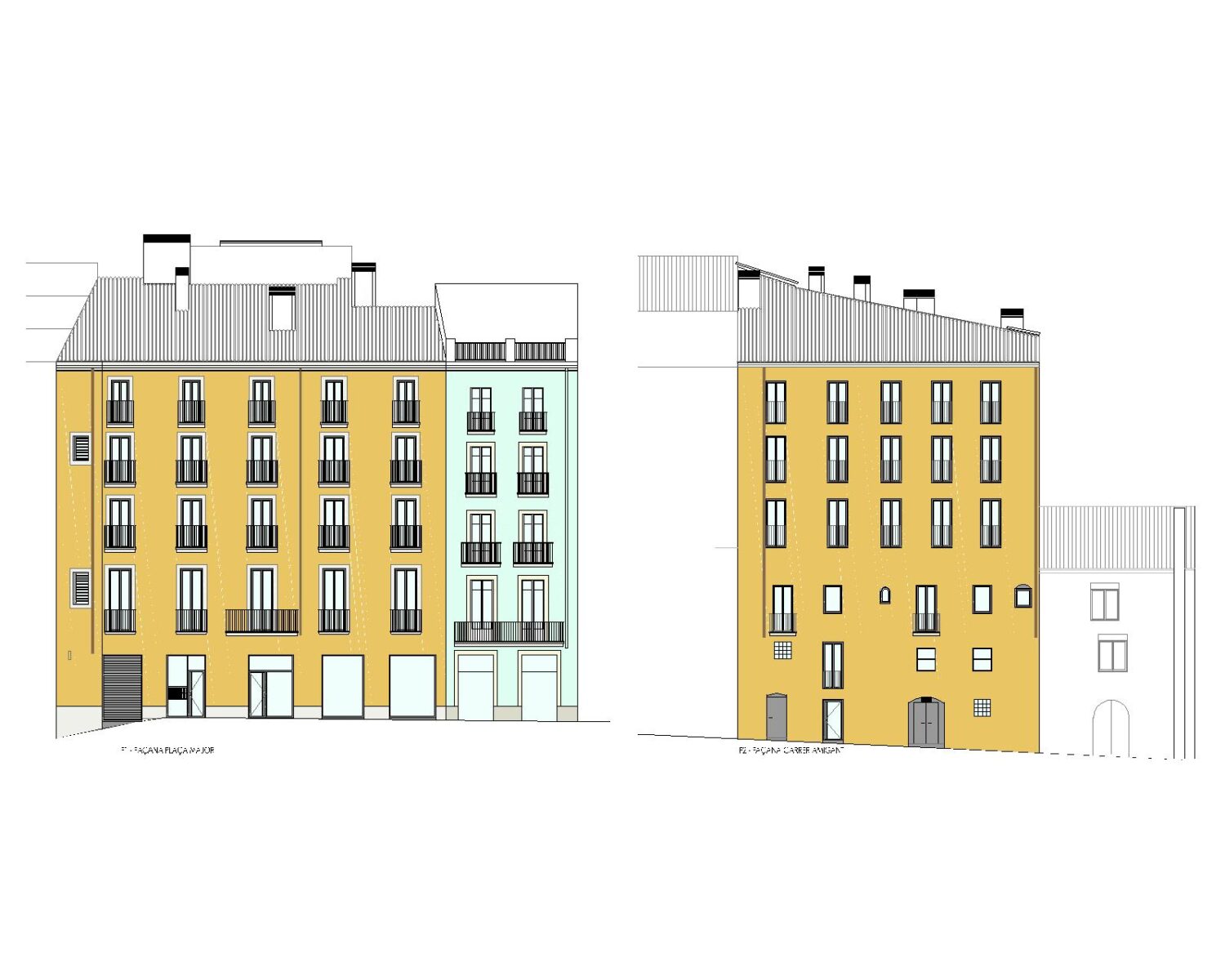 The object of the project is the structural consolidation of the building and its interior redistribution. The lower floors house a space for offices, while on the three upper floors there are a total of fourteen homes for the elderly and community services located on the fourth floor. The main access to the building is via the façade facing the Plaza Mayor. The building achieves an A energy classification.