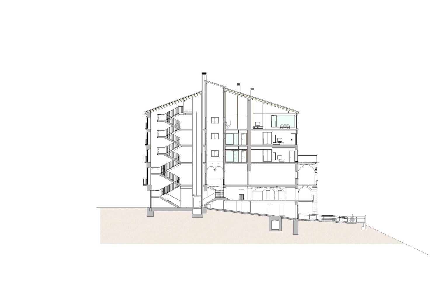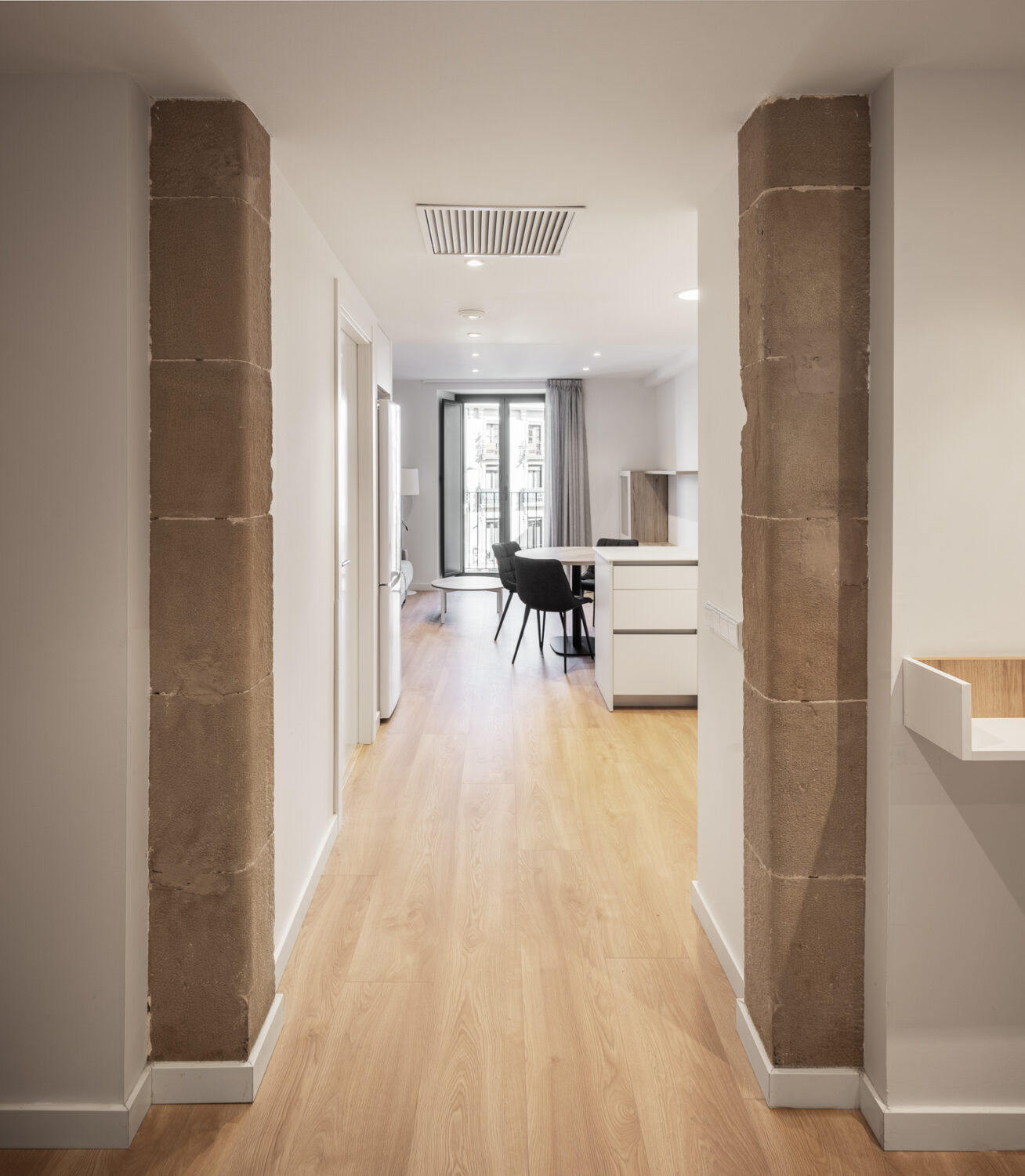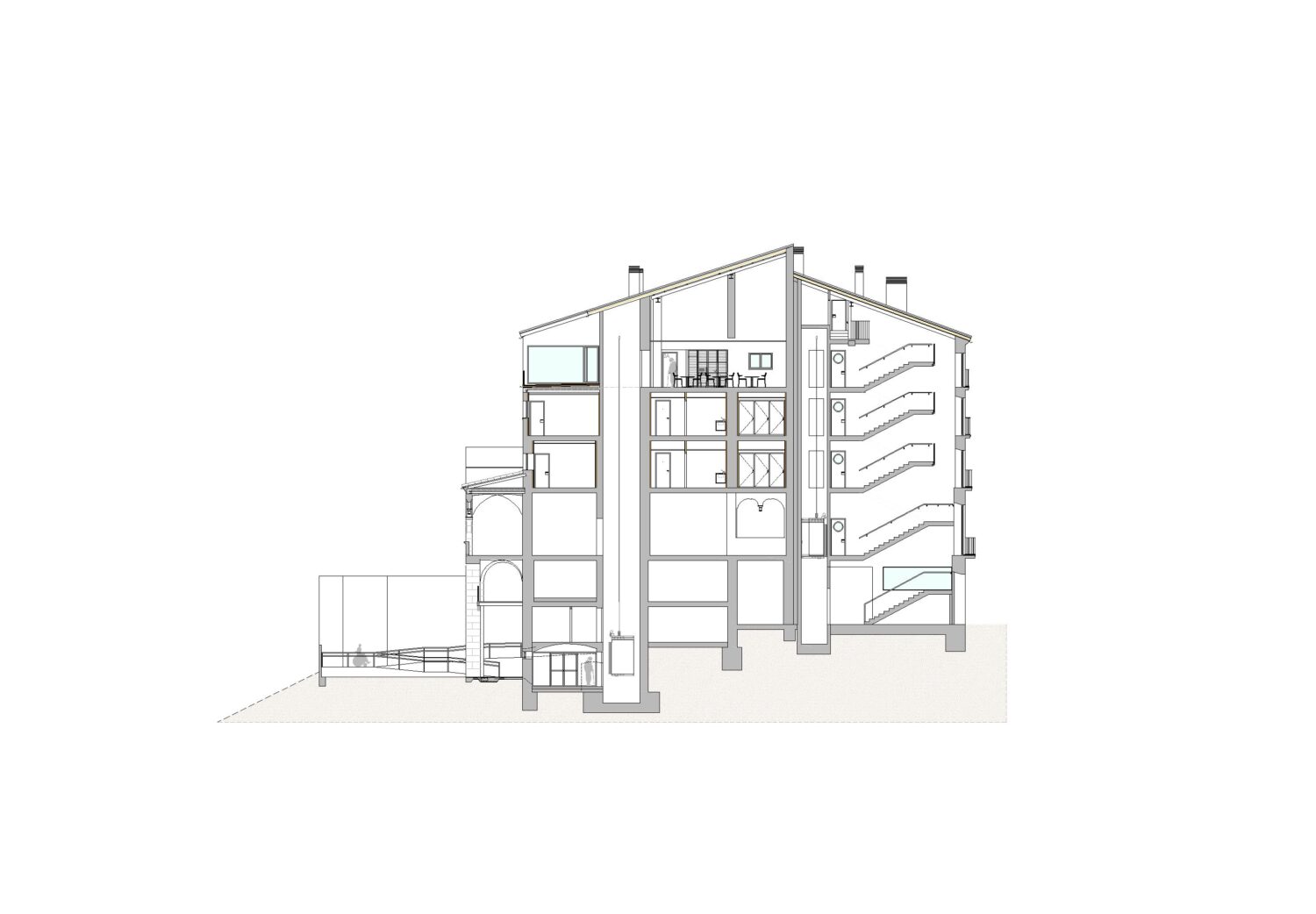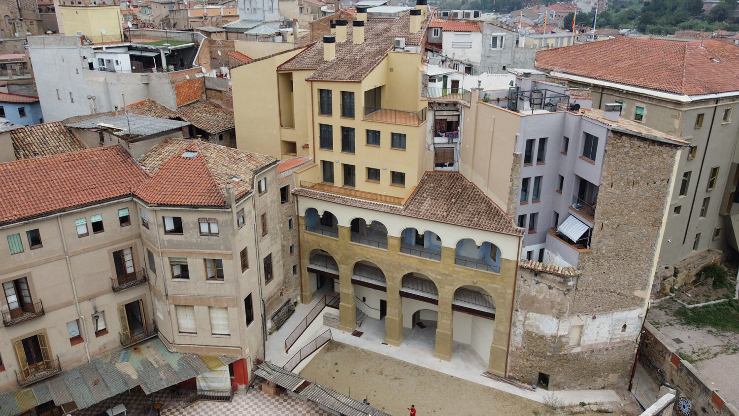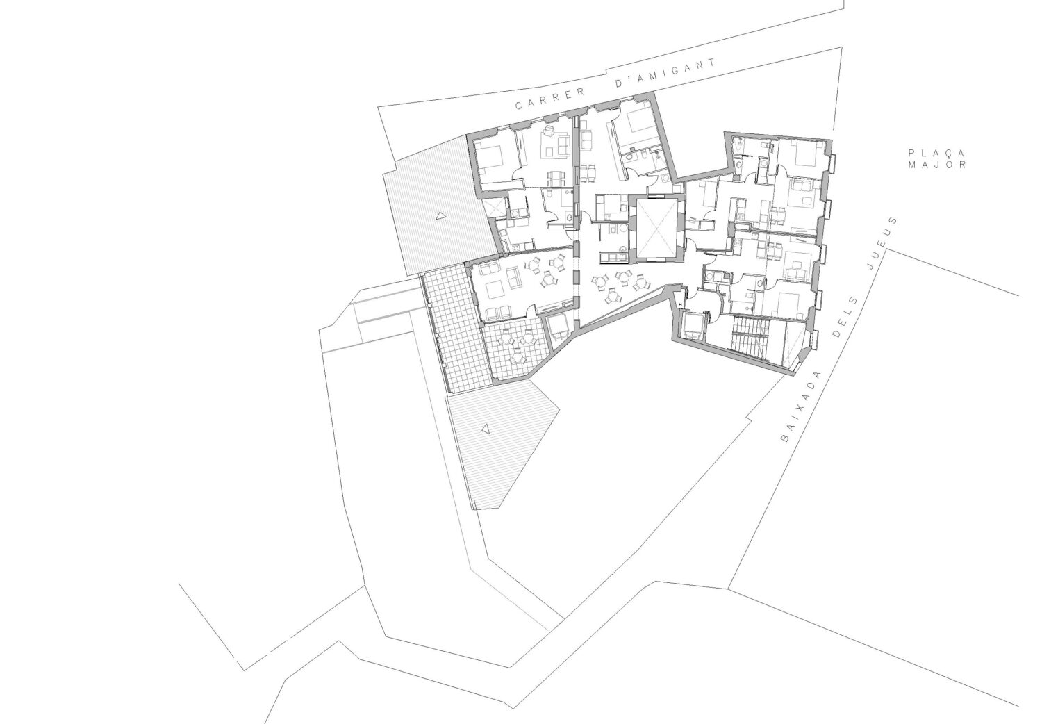 The object of the project is the structural consolidation of the building and its interior redistribution. The lower floors house a space for offices, while on the three upper floors there are a total of fourteen homes for the elderly and community services located on the fourth floor. The main access to the building is via the façade facing the Plaza Mayor. The building achieves an A energy classification.
