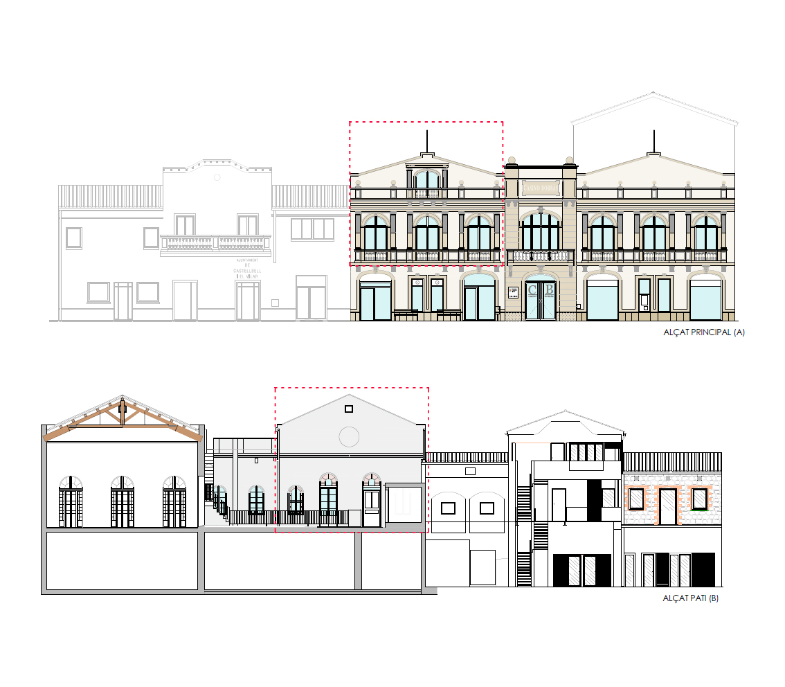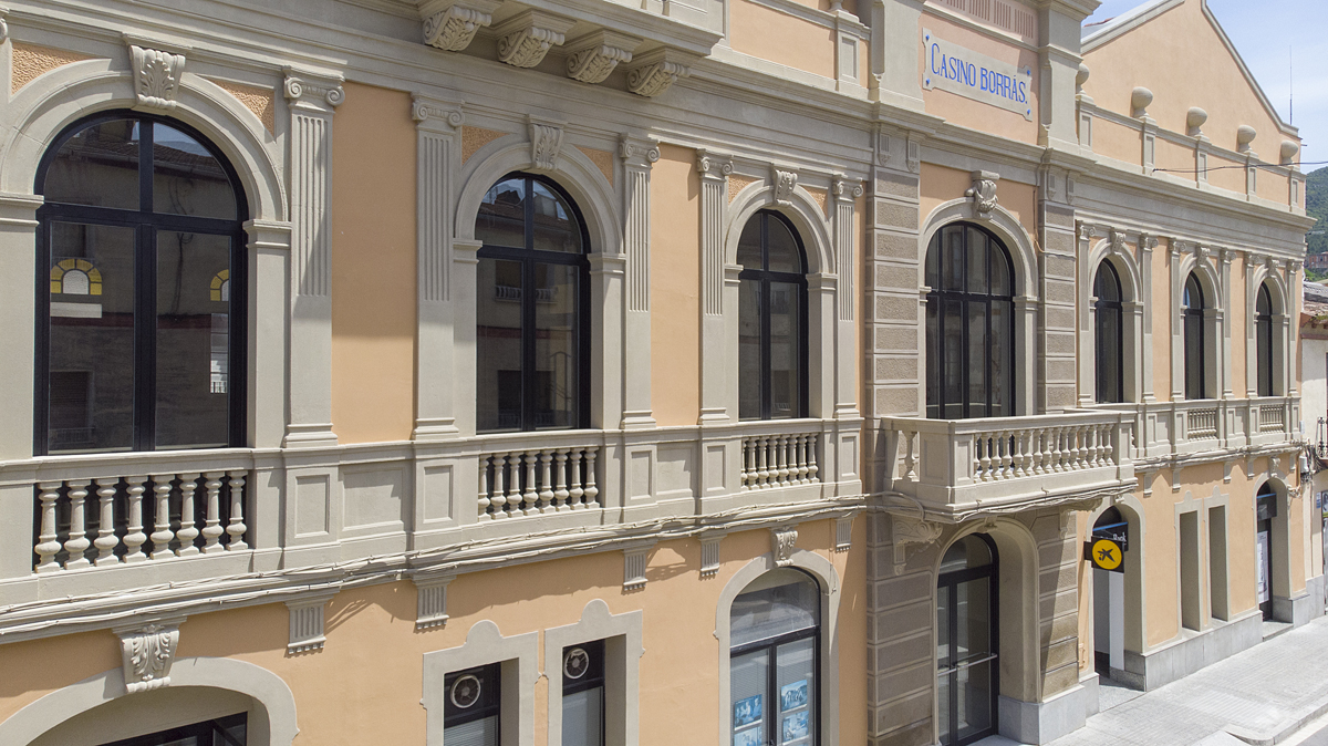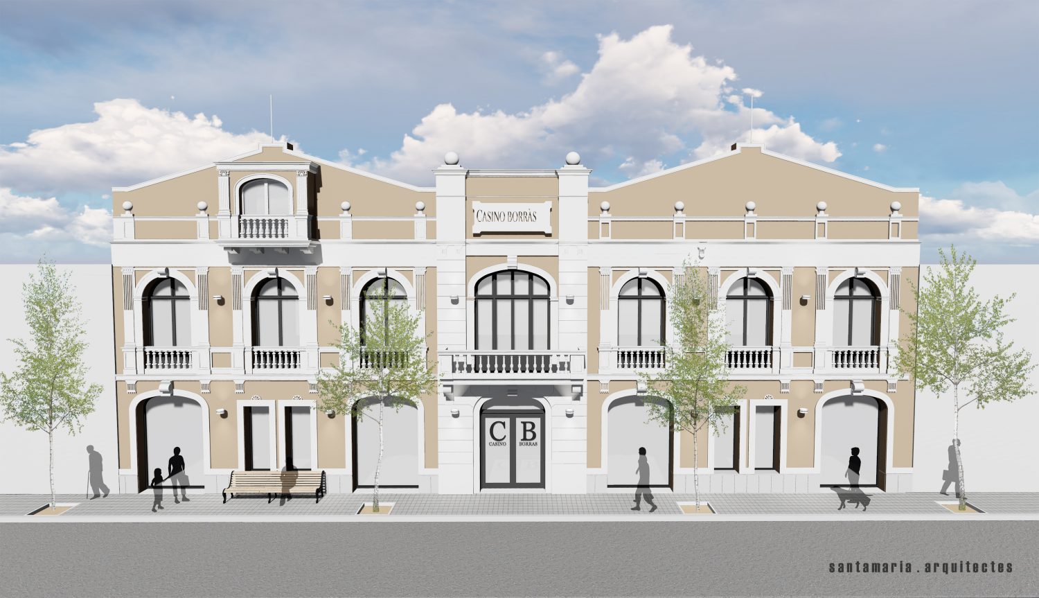 L’objectiu de la primera fase del projecte és la rehabilitació de l’envolupant de l’edifici del Casino Borràs, definint les directrius i aplicant les tècniques i els mètodes per restablir i recuperar l’estat original d’aquest edifici.