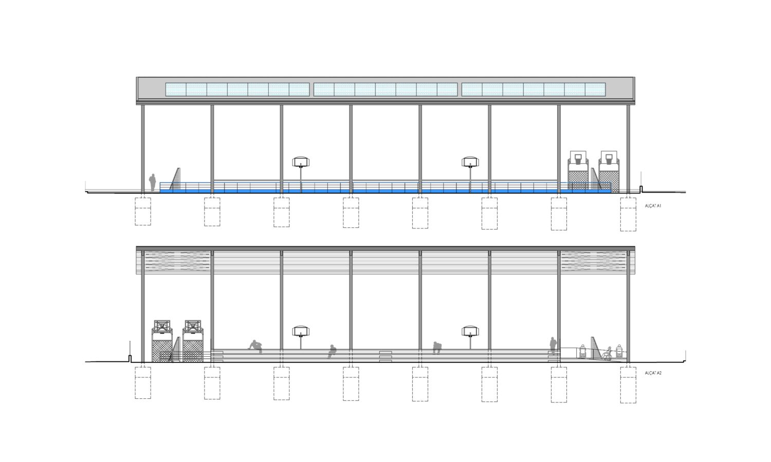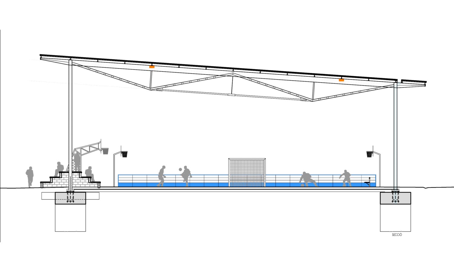 Es planteja una estructura formada per vuit pòrtics metàl·lics de 27,70 metres que suporten la coberta que cobreix la pista poliesportiva.