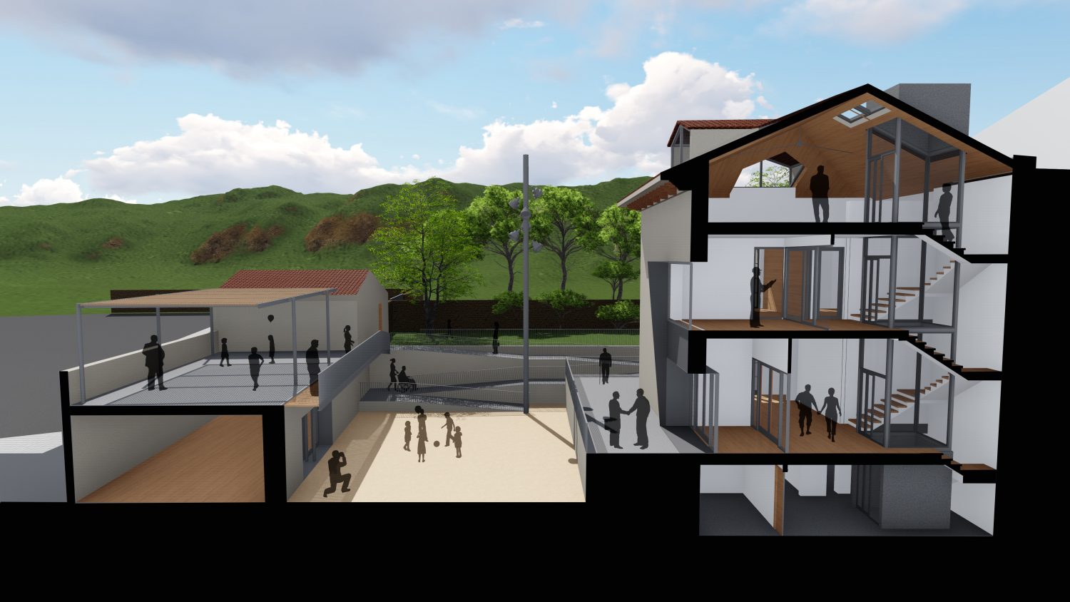 Es rehabilita estructuralment l’edifici i s’adeqüen les comunicacions verticals a les normatives actuals, amb la construcció d’una nova escala i ascensor adaptats.