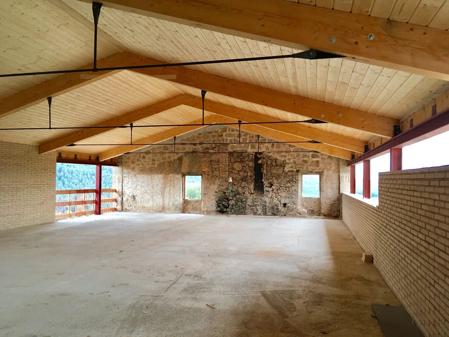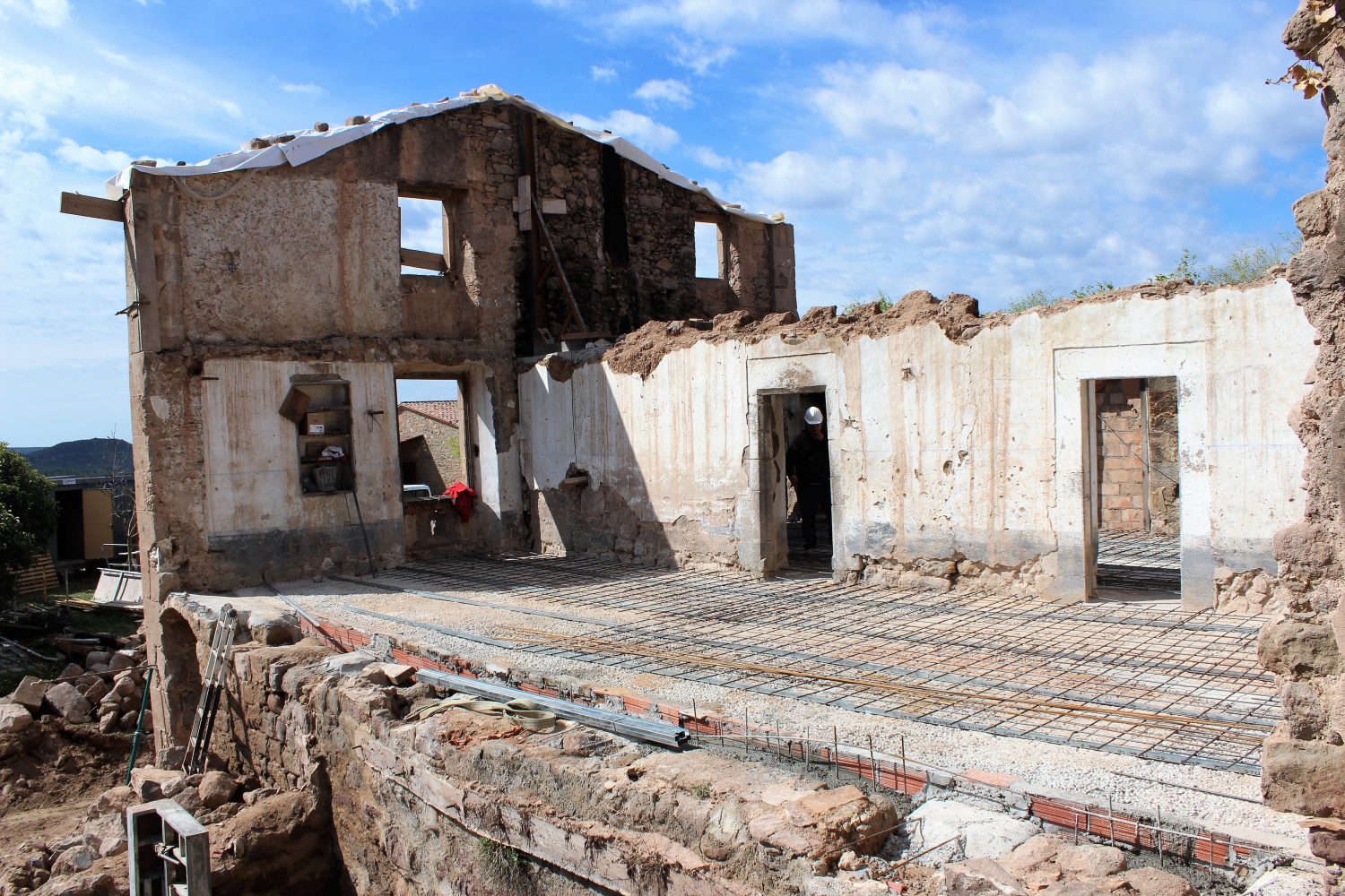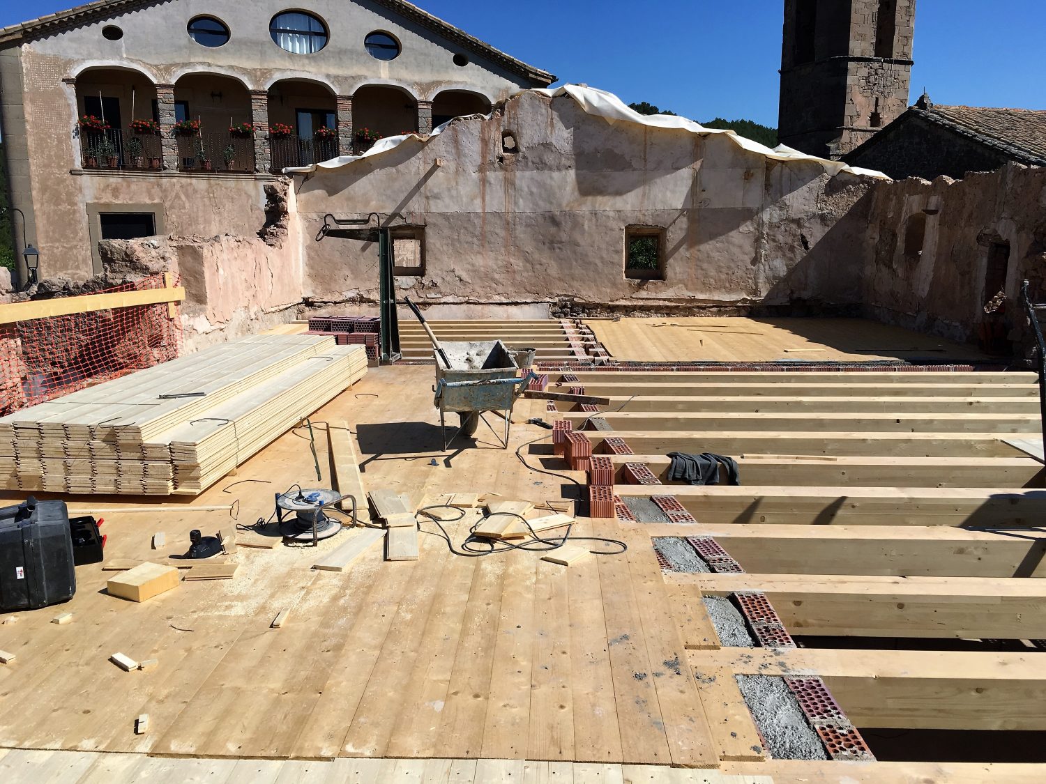 En una 1ª Fase, s’ha reconstruït l’estructura i ampliat un volum on s’encabiran els accessos. S’ha consolidat estructuralment l’edifici amb la substitució dels forjats i la coberta existents per uns de nous de fusta.