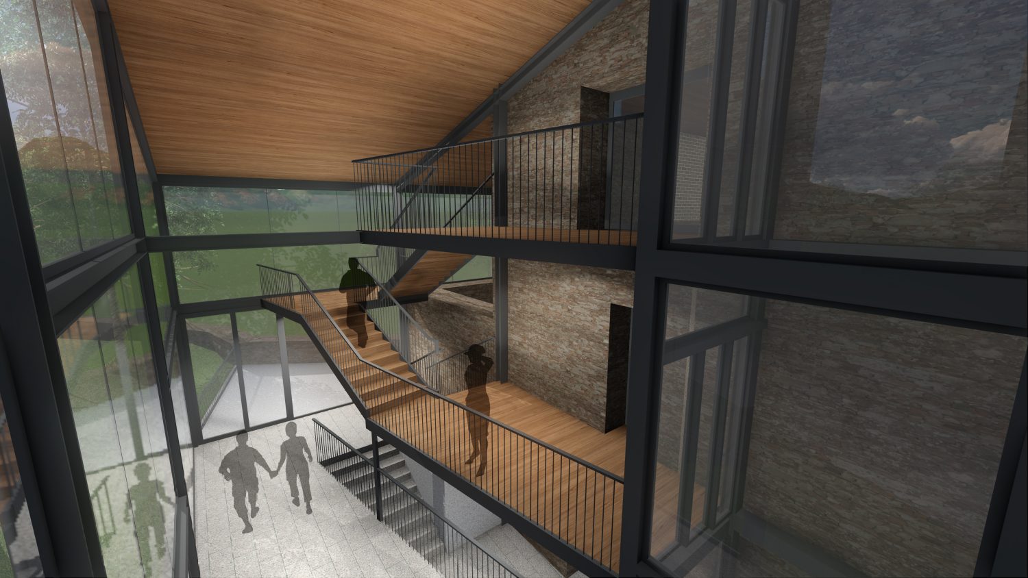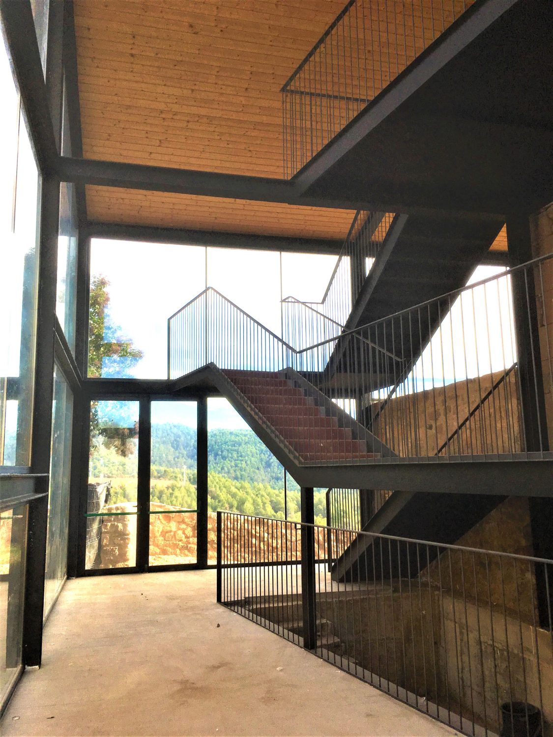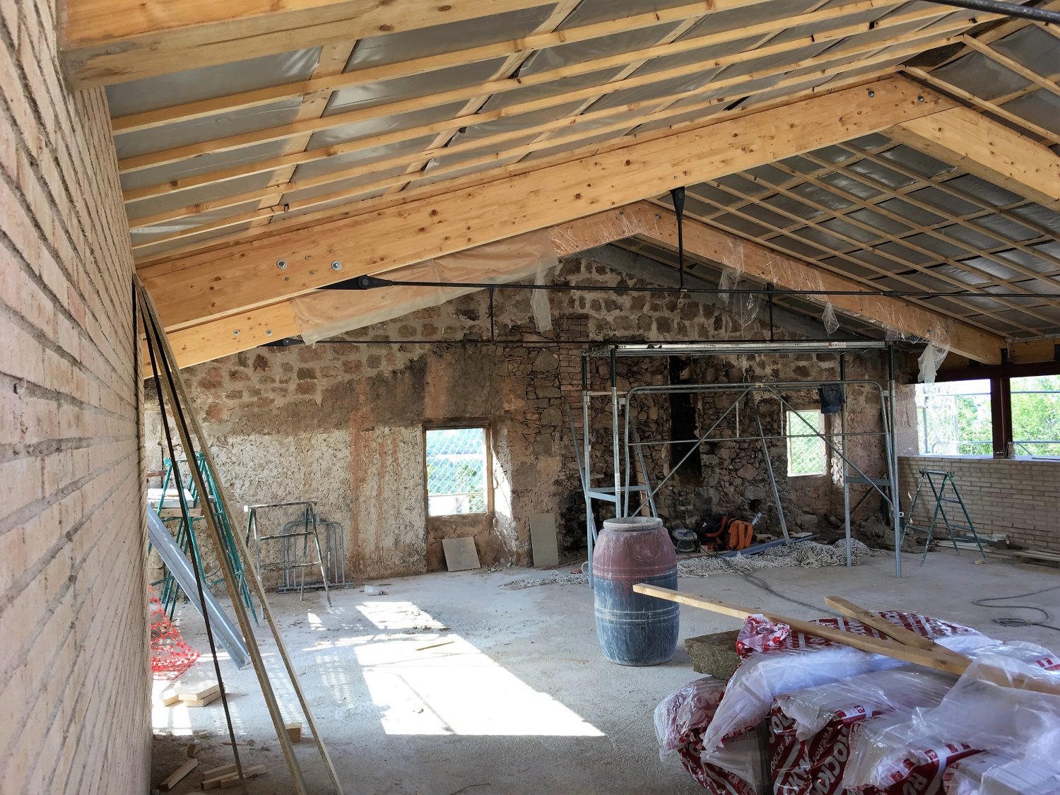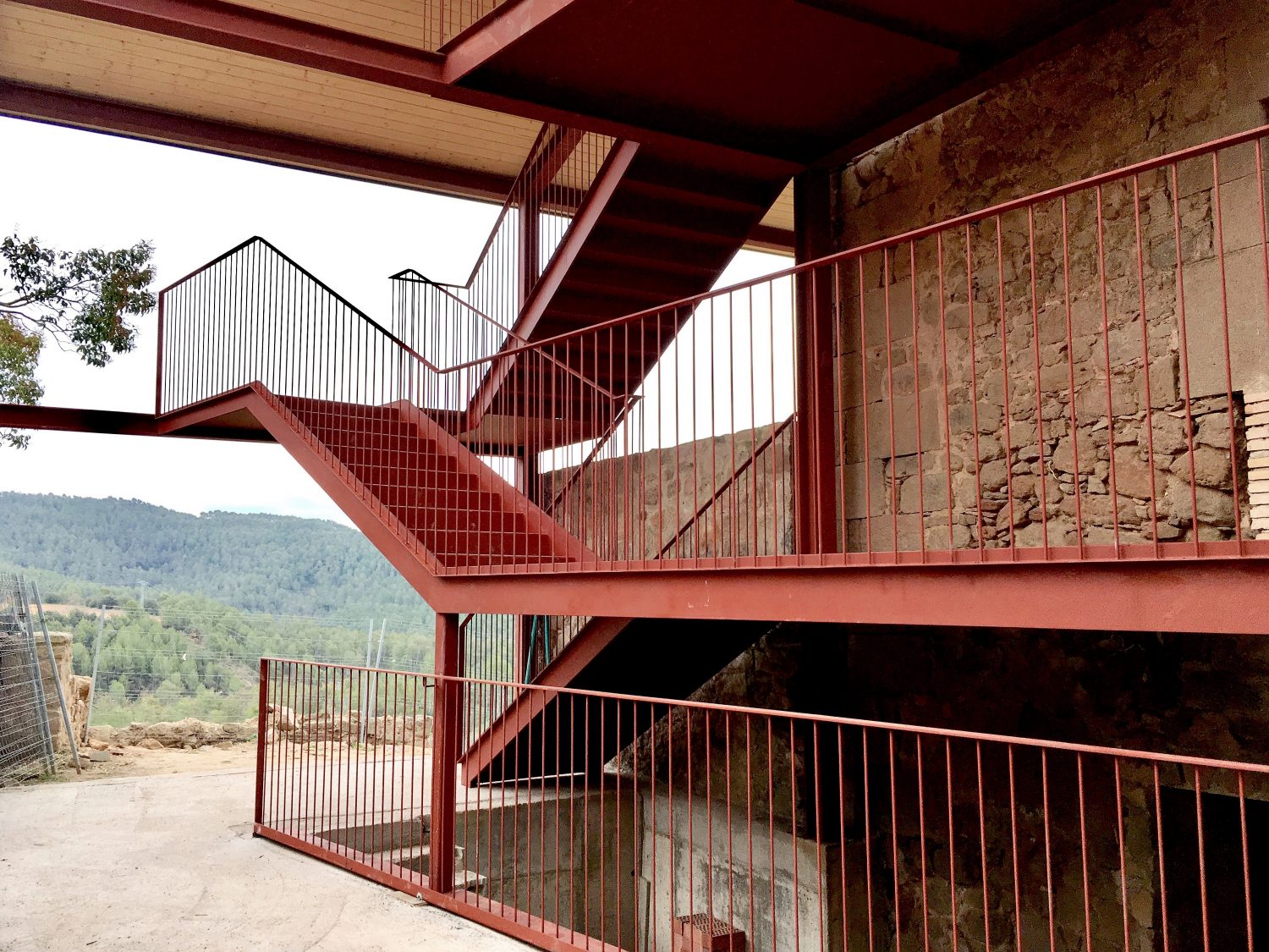 En una 1ª Fase, s’ha reconstruït l’estructura i ampliat un volum on s’encabiran els accessos. S’ha consolidat estructuralment l’edifici amb la substitució dels forjats i la coberta existents per uns de nous de fusta.