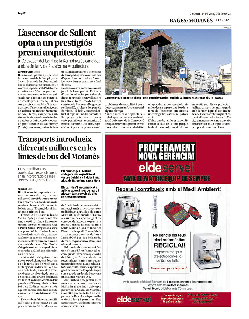 Ascensor públic per millora d'accessibilitat al barri de "La Rampinya" a Sallent
