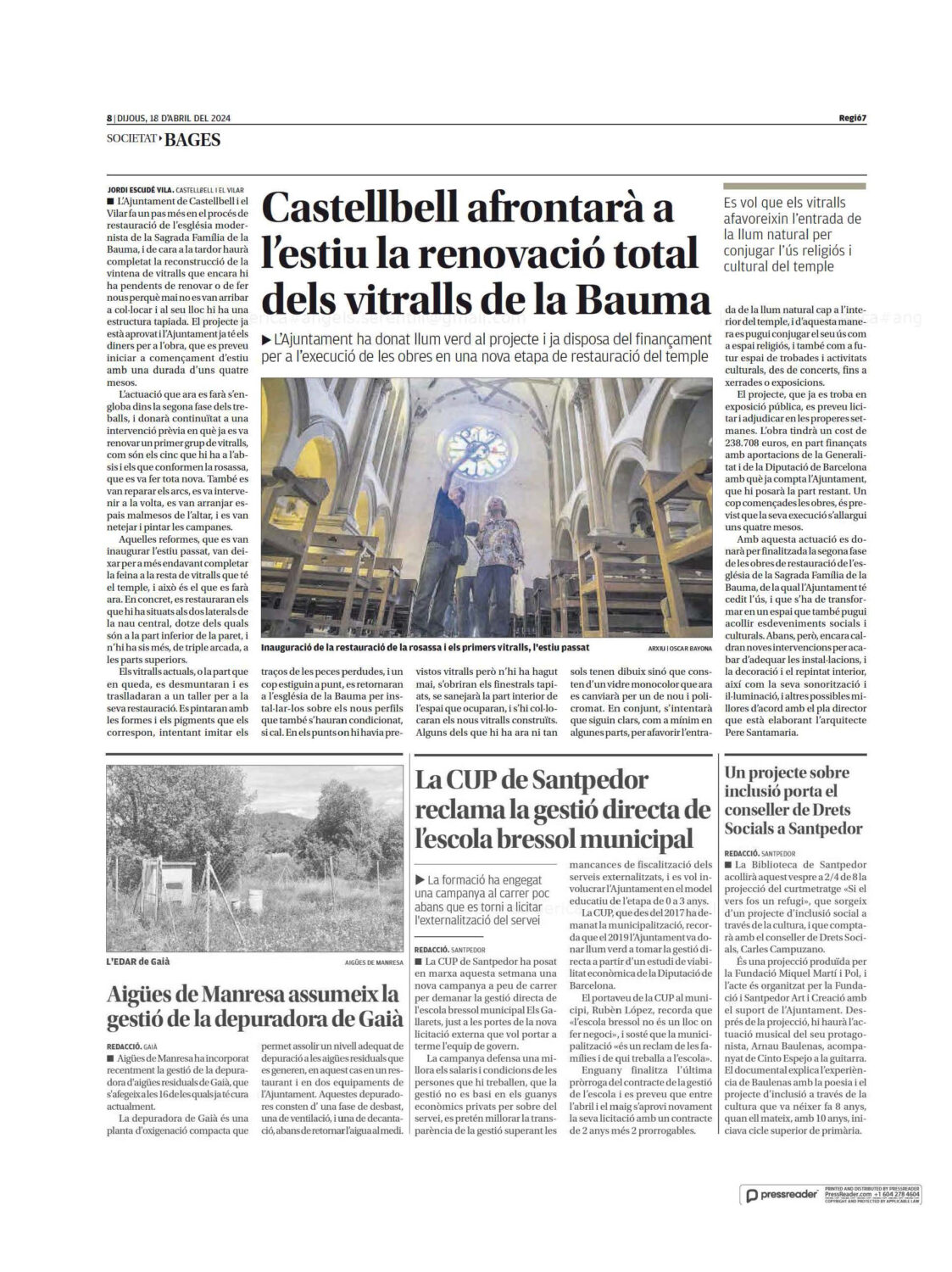 Rehabilitació de l'església de la Sagrada Família de la Bauma